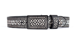 Cinturón de Plata Rombo Con Cruz Y Greca Azteca