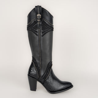 Bota Cuadra Pitón Belly Cosmo Negro Dama