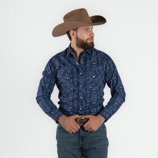 Camisa Rodeo Rombos Azul Caballero