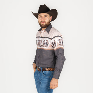 Camisa Rodeo Beige Gris Caballero