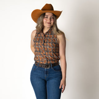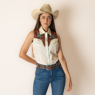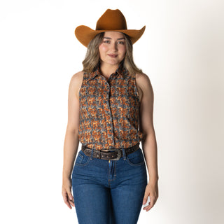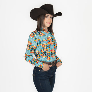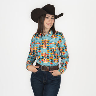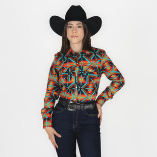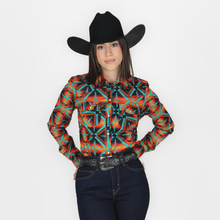 Camisa Rock & Roll Denim Aztec Orange Dama