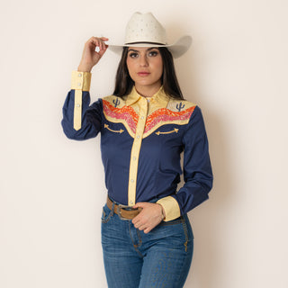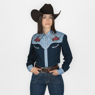 Camisa Rock & Roll Denim Aztec Navy Dama