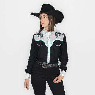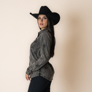 Camisa Kimes Ranch Kaycee Denim Black Dama