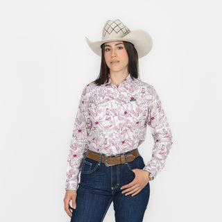 Camisa Ariat Wr Kirby LS Shrt Rose Wine Dama