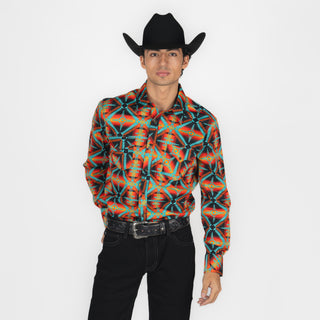 Camisa Rock & Roll Denim Aztec Orange Dama