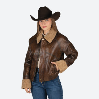 Chamarra Cuadra Cordero Sanded Café Dama