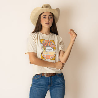 Blusa Rock & Roll Denim Tie Dye Graphic Off White Dama