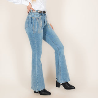 Jeans Rock & Roll Denim Scallop Pocket Riding Dama