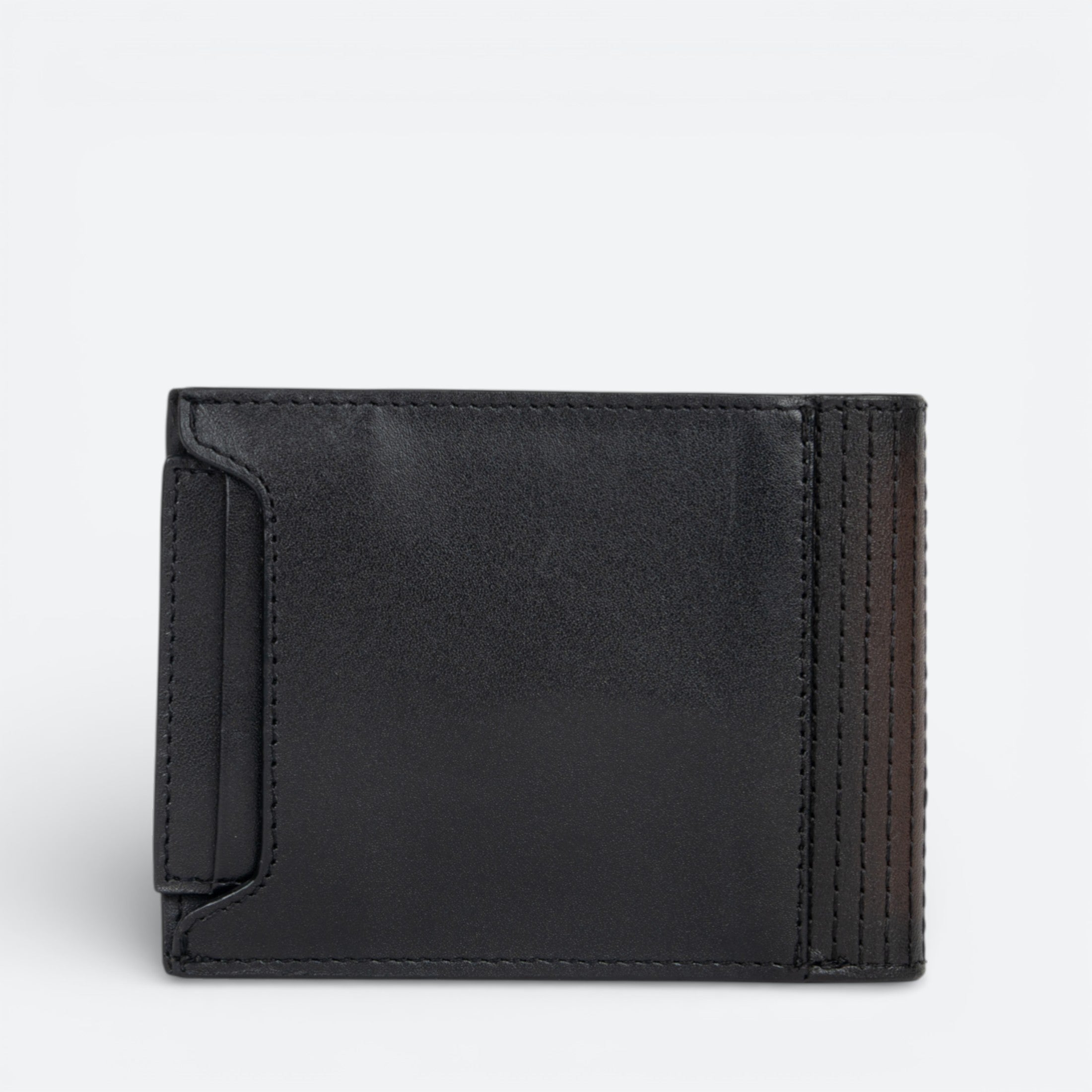 Cartera en piel genuina de mantarraya y piel de bovino para caballero. Al frente presenta bordado lineal en contraste de color y textura y aplicación metálica del logotipo Cuadra. En su interior cuenta con seis espacios para tarjetas y dos espacios para efectivo. Cuenta con un tarjetero extraíble en piel de bovino con espacio adicional para cinco tarjetas.
