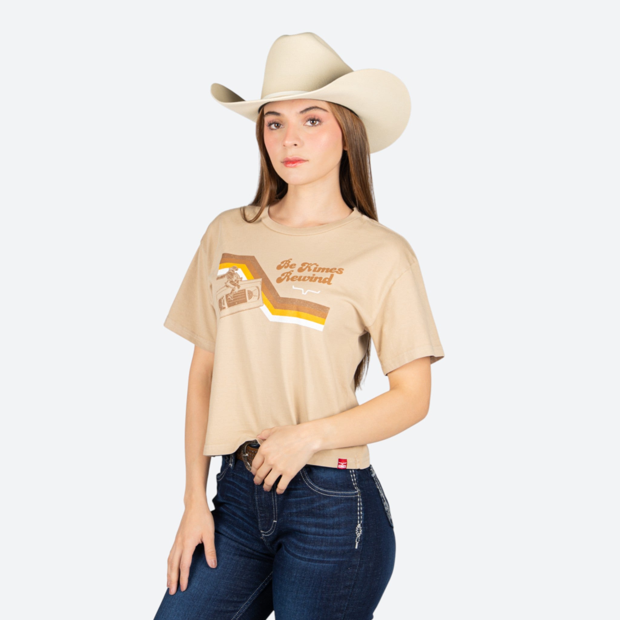 Blusa Kimes Ranch modelo Rewind en tonalidad Tan, diseñada para la mujer moderna que busca autenticidad y estilo. Esta prenda combina la esencia del western contemporáneo con un corte versátil que se adapta a cualquier ocasión.