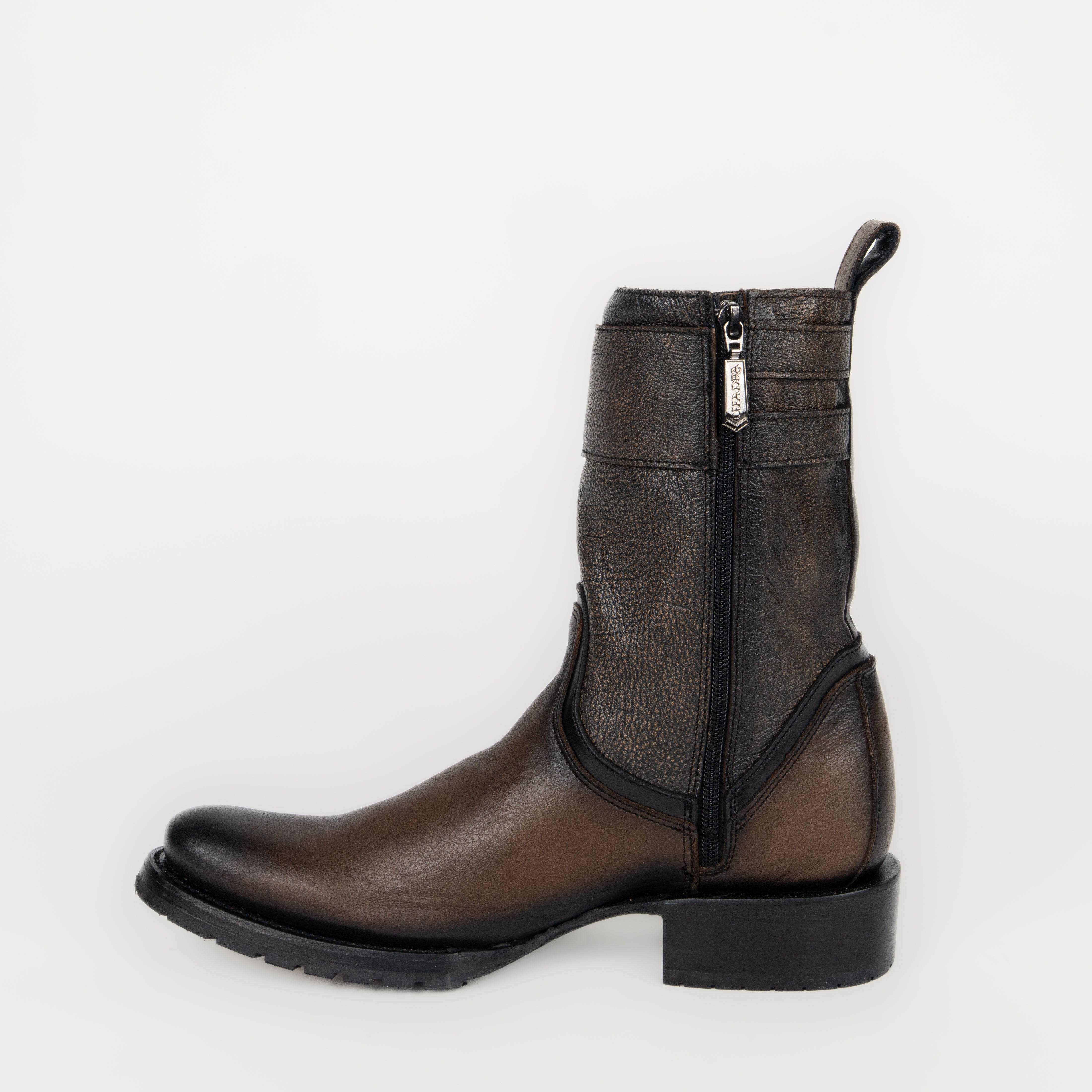Bota urbana para caballero en piel genuina de bovino. Presenta logotipo Cuadra encapsulado bajo aplicación de KPU, acabado vintage elaborado con piel trabajada artesanalmente con texturas y efectos únicos, al costado presenta correa decorativa ajustada con hebillas. Ajustada con cierre interno. Cuenta con la nueva tecnología: planta Ortholite, que le da mayor ligereza, confort, transpirabilidad y amortiguación. Con suela track antiderrapante.