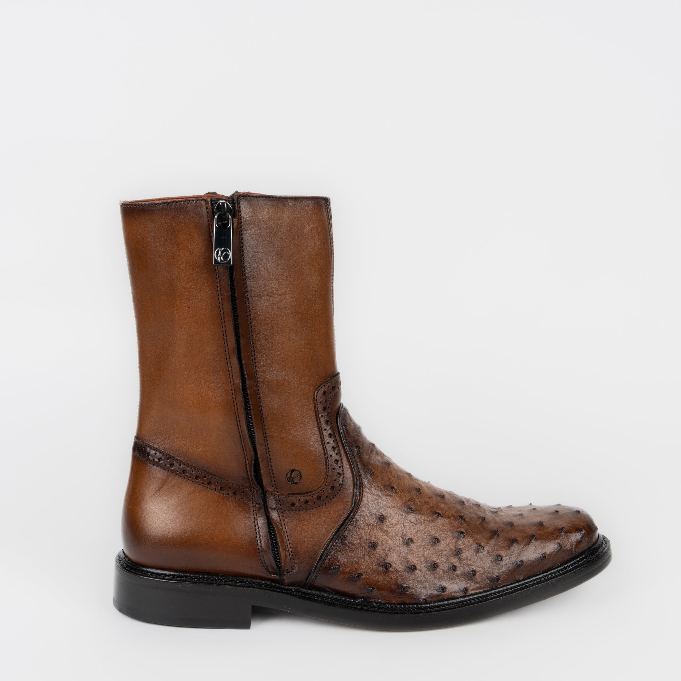 Bota Franco Cuadra Avestruz Ternara Miel Doble Cierre Caballero