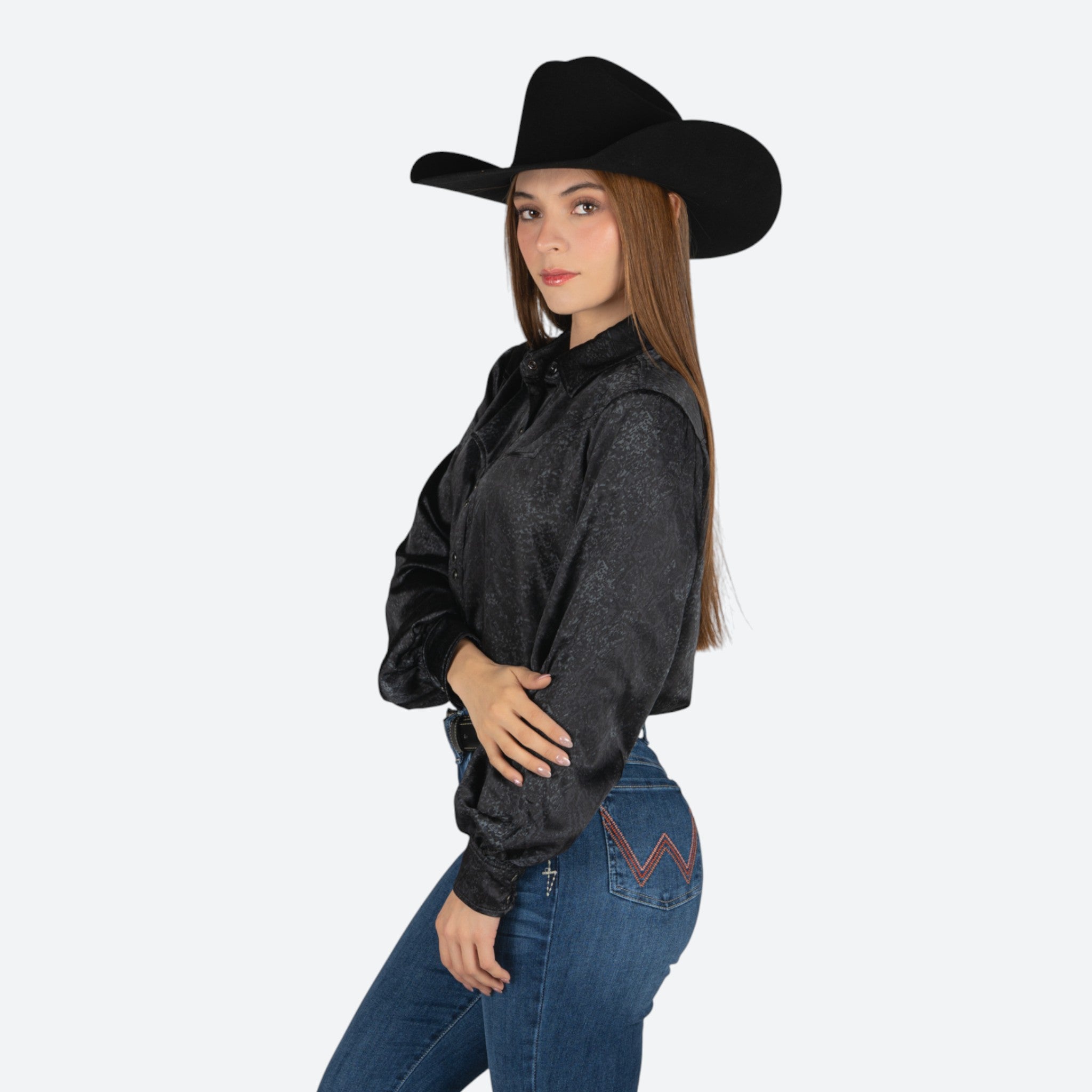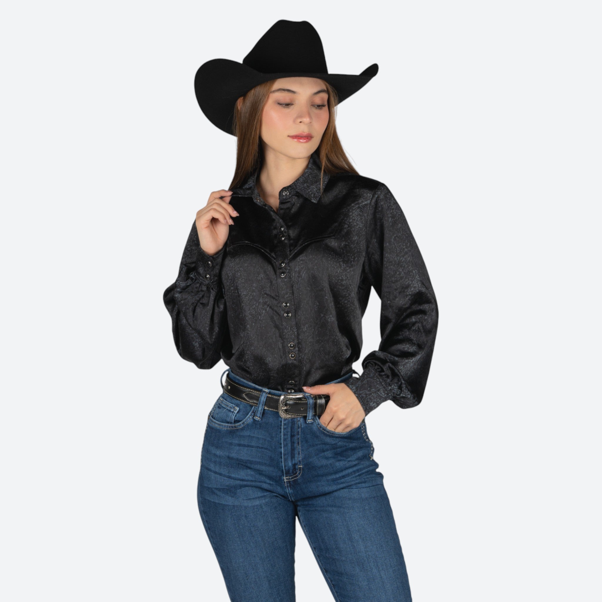 Camisa Ariat Jolie SNP en negro, diseñada específicamente para mujer. Esta prenda combina funcionalidad y estilo con la calidad característica de Ariat. El corte ajustado favorece la silueta, mientras que los materiales de primera calidad garantizan durabilidad y comodidad en el uso diario.