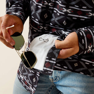 Mantente alerta, mantén la calma. El calor y la humedad no son rival para esta camisa de botones de corte clásico. La perforación total proporciona la máxima transpirabilidad, mientras que la tela que absorbe la humedad y no olor te mantiene cómodo y seco.