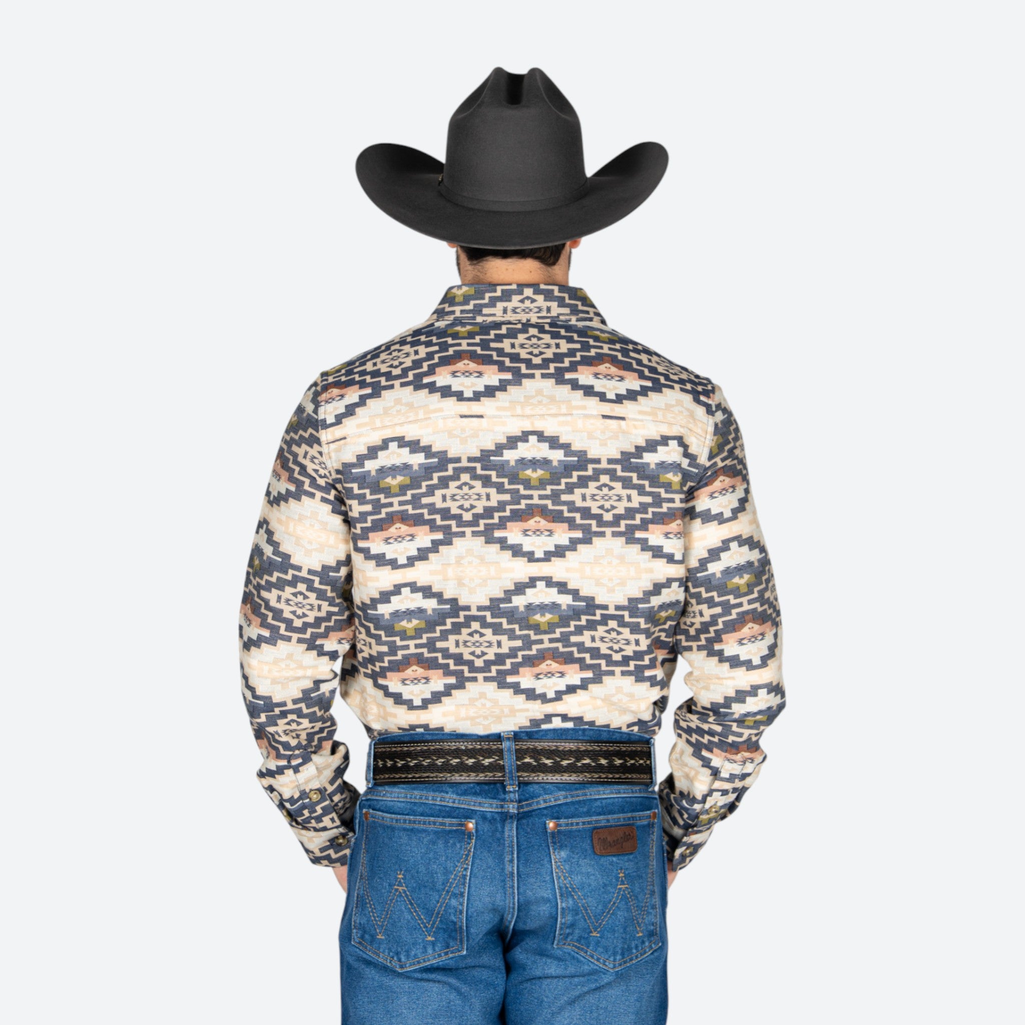 Camisa de manga larga Panhandle confeccionada en algodón de calidad superior con un distintivo patrón azteca en tonos kaki.