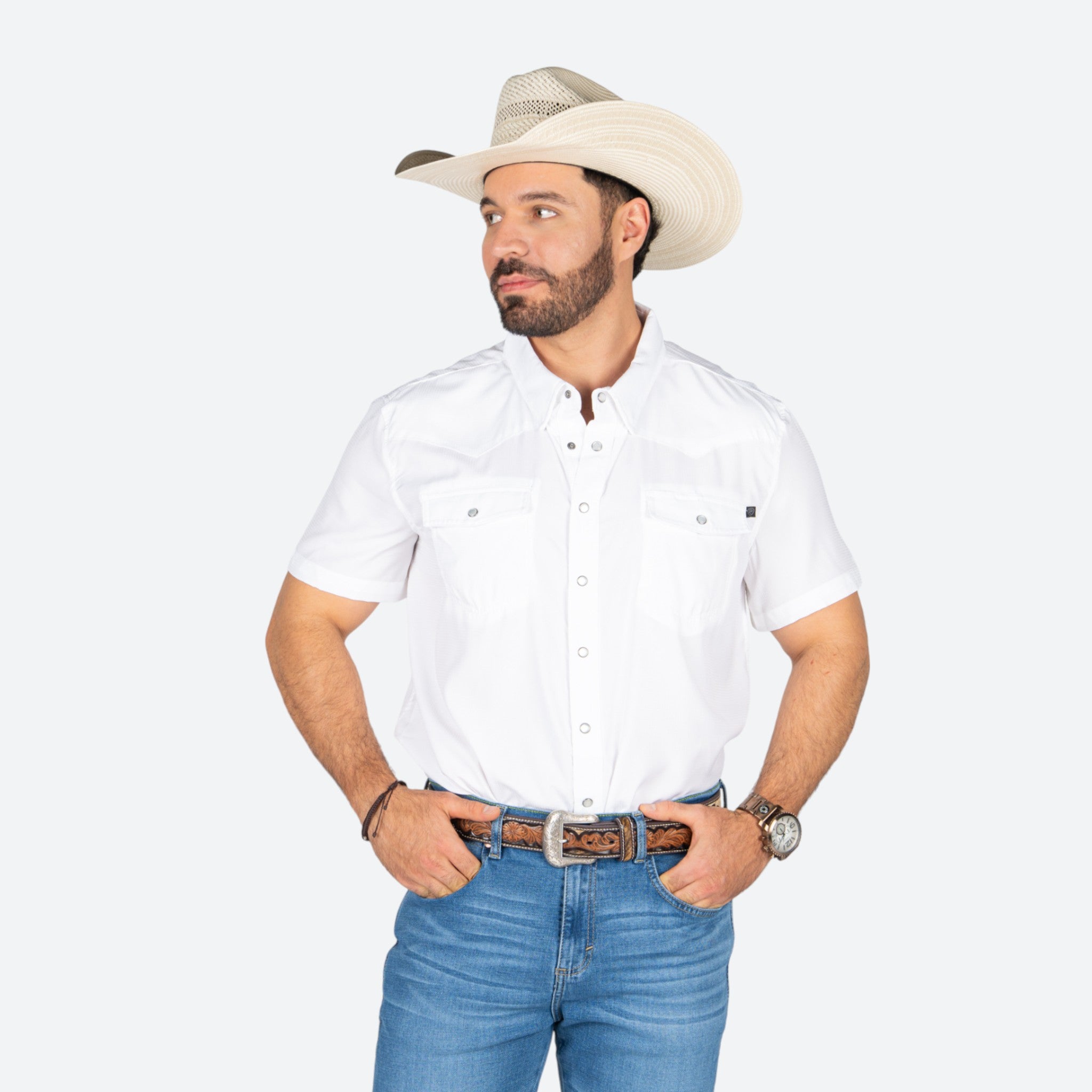 Camisa con tecnología Tek que proporciona máxima ventilación en la espalda, ideal para climas cálidos. Diseño rock & roll con estilo western auténtico que combina comodidad y actitud. La tela transpirable mantiene la frescura durante todo el día, mientras que los detalles clásicos de caballero garantizan un look versátil.