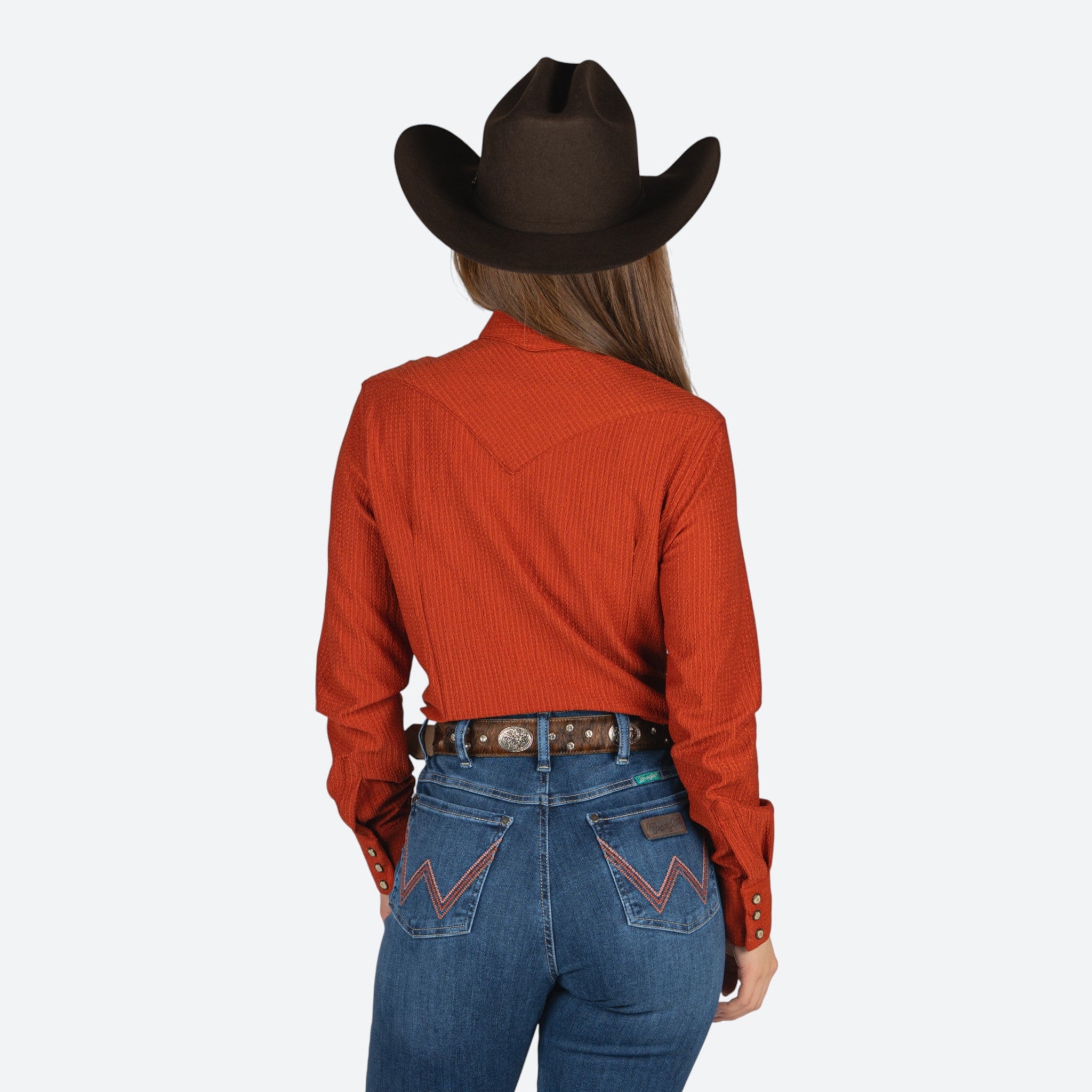 Camisa Rodeo confeccionada en tela Shedron de alta calidad, diseñada específicamente para dama.