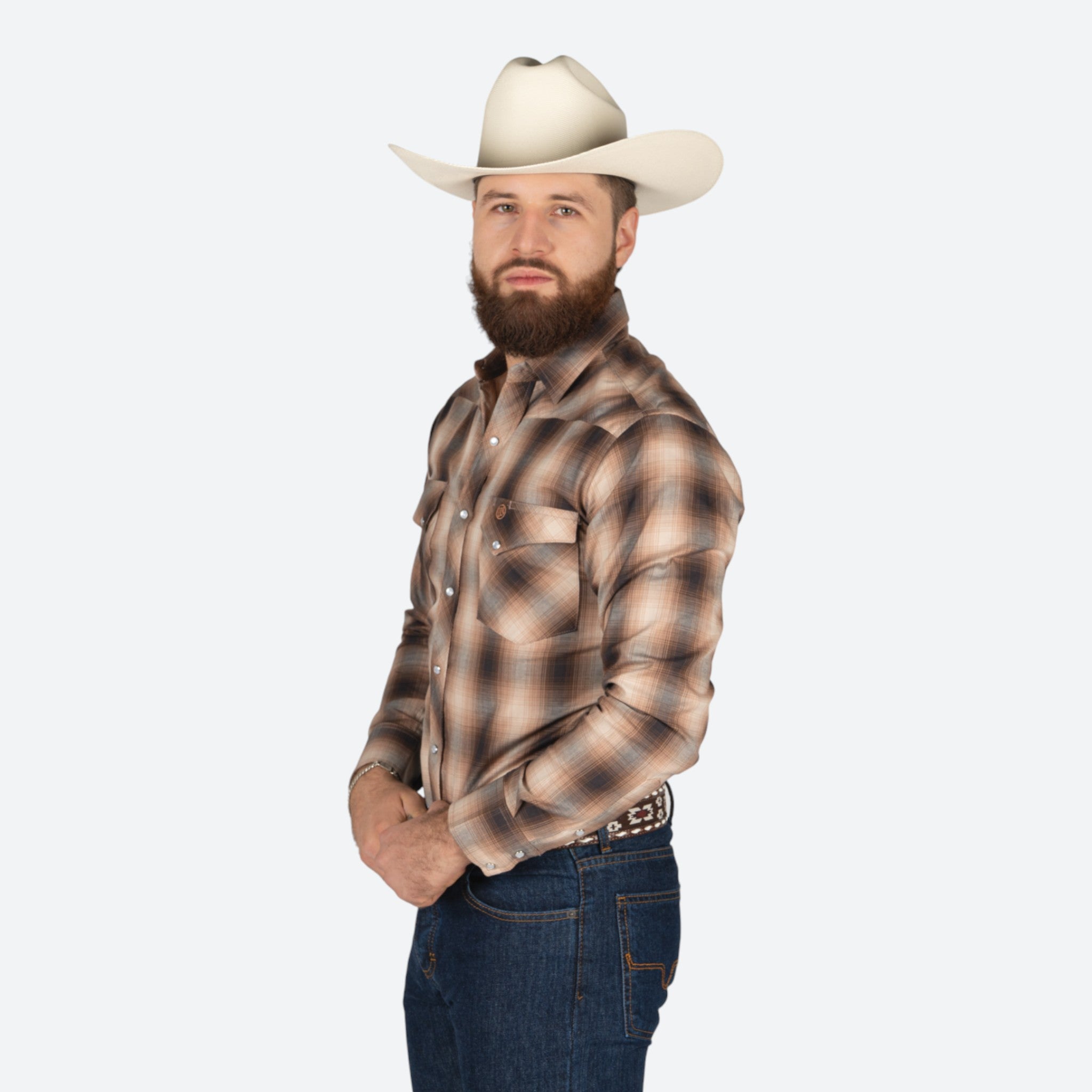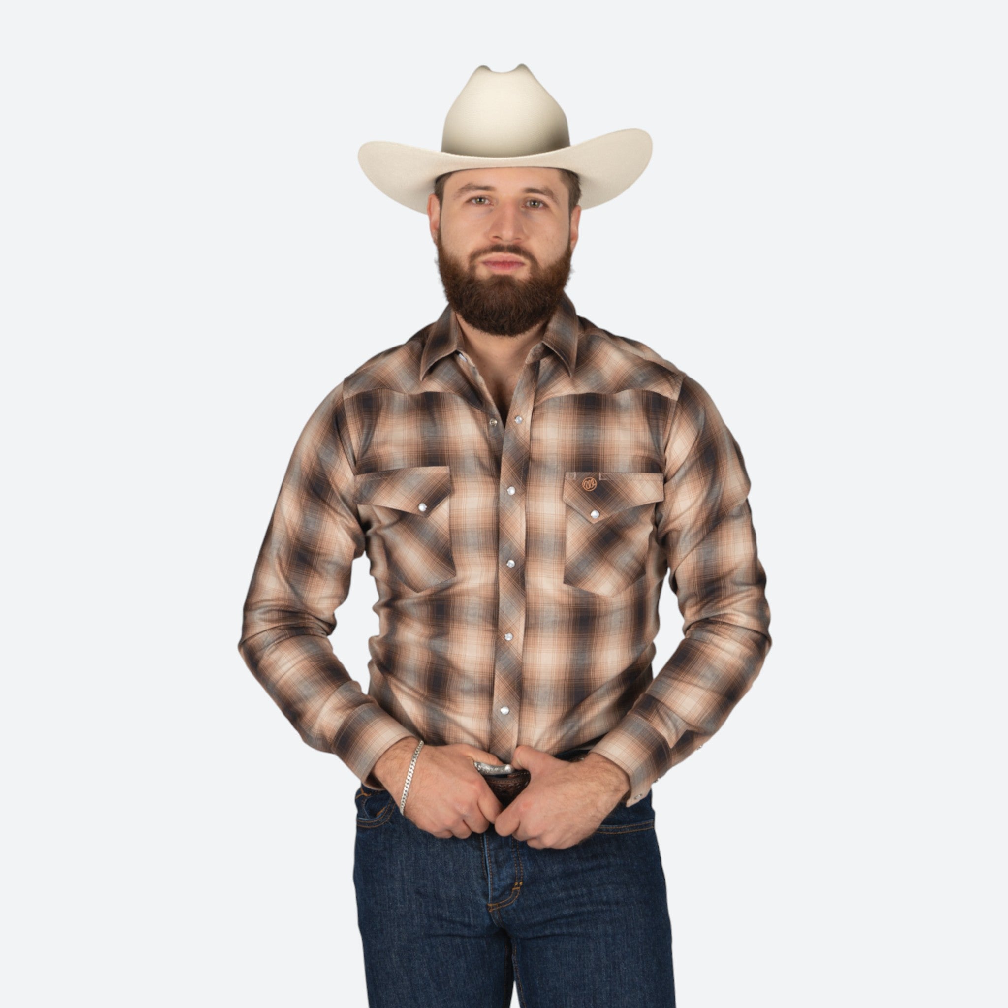 Camisa de manga larga Wrangler en patrón de cuadros café, diseñada específicamente para el caballero moderno. Confeccionada con materiales de calidad superior que garantizan durabilidad y comodidad durante todo el día.