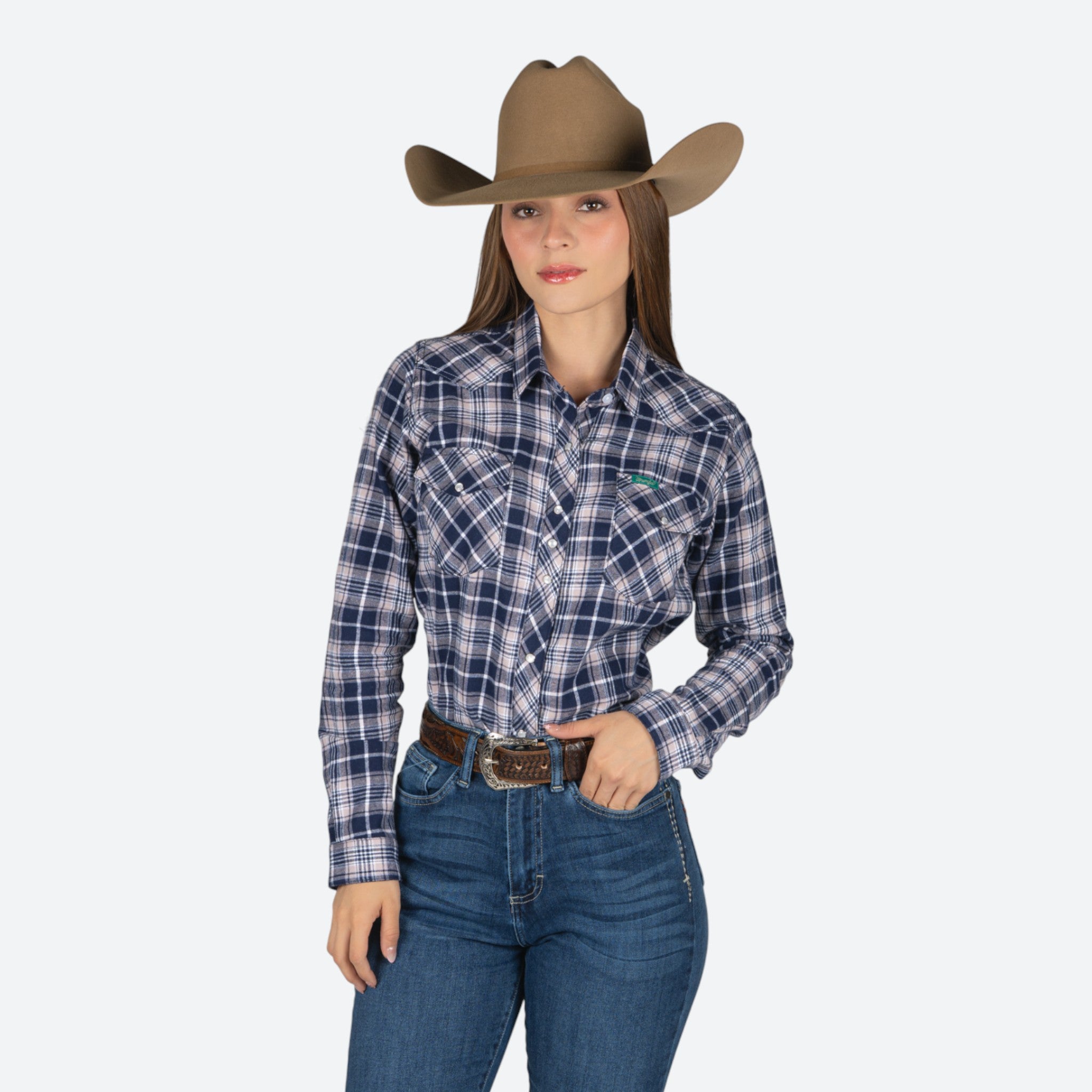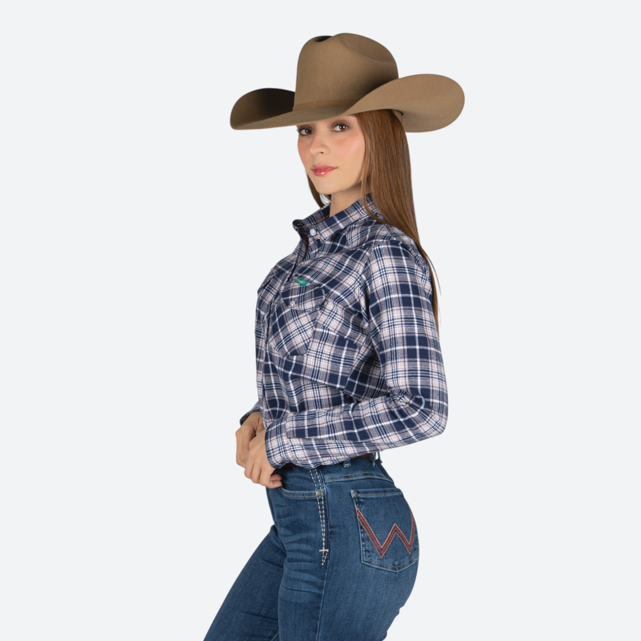 Camisa de manga larga Wrangler en tela de algodón con patrón de cuadros en tonos marino.