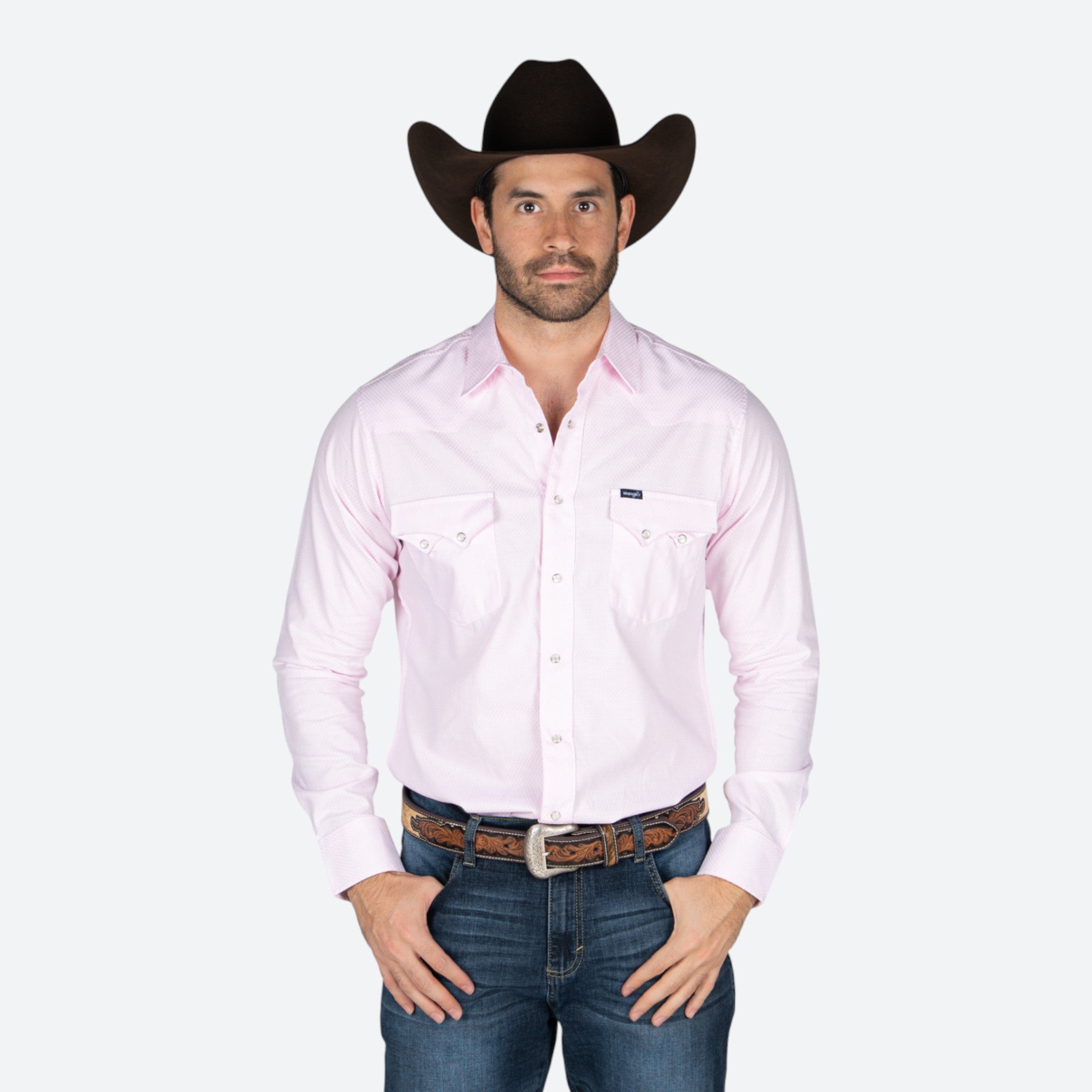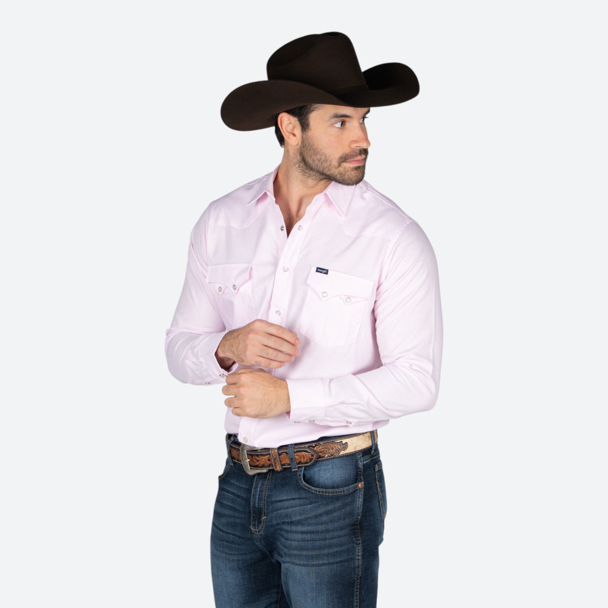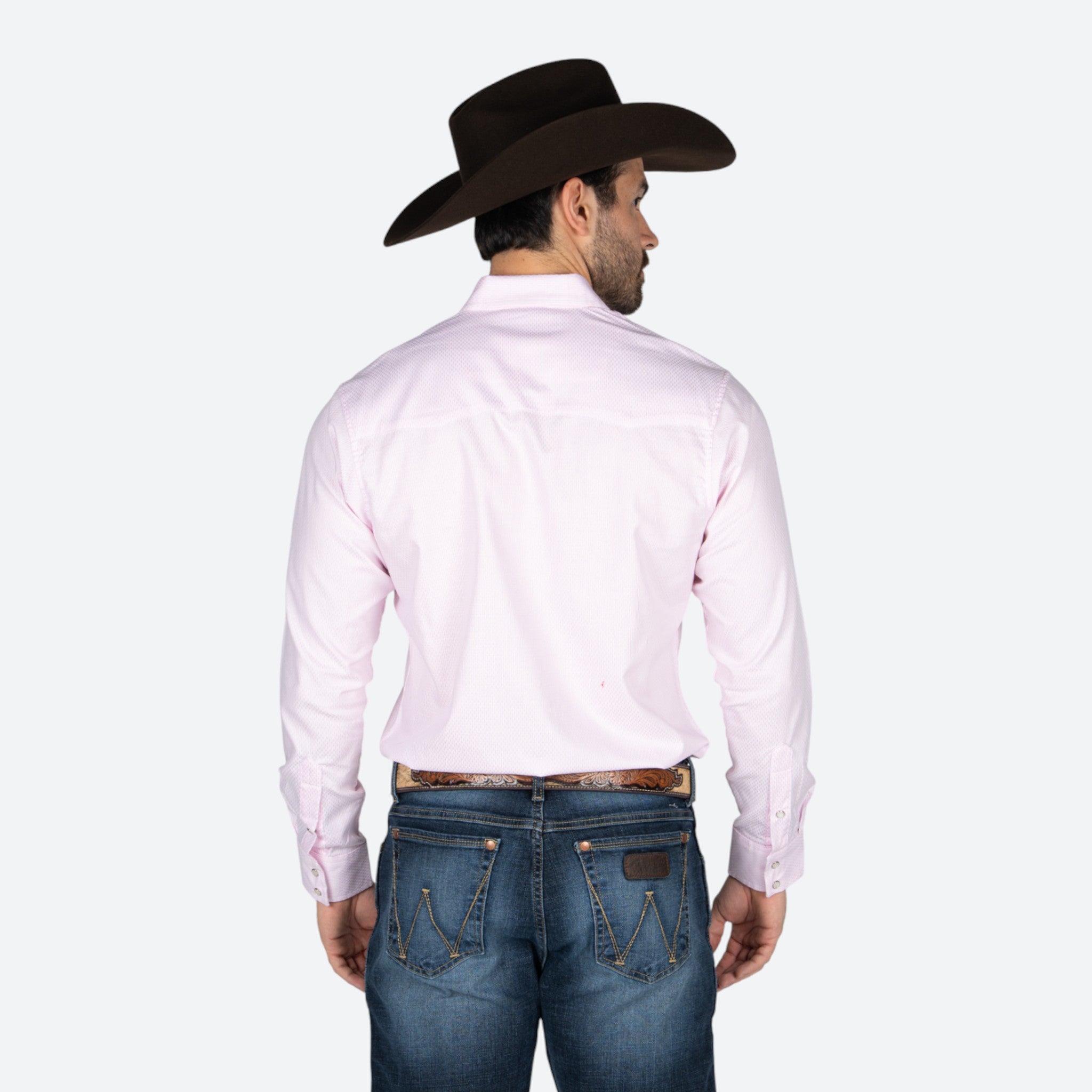 Camisa Wrangler de corte clásico para caballero, confeccionada con tela de calidad superior que garantiza durabilidad y comodidad en el uso diario. Presenta un atractivo estampado en tonalidad rosa que le otorga un toque moderno y versátil. Ideal para ocasiones casuales o semi-formales, combina perfectamente con jeans o pantalones de vestir.