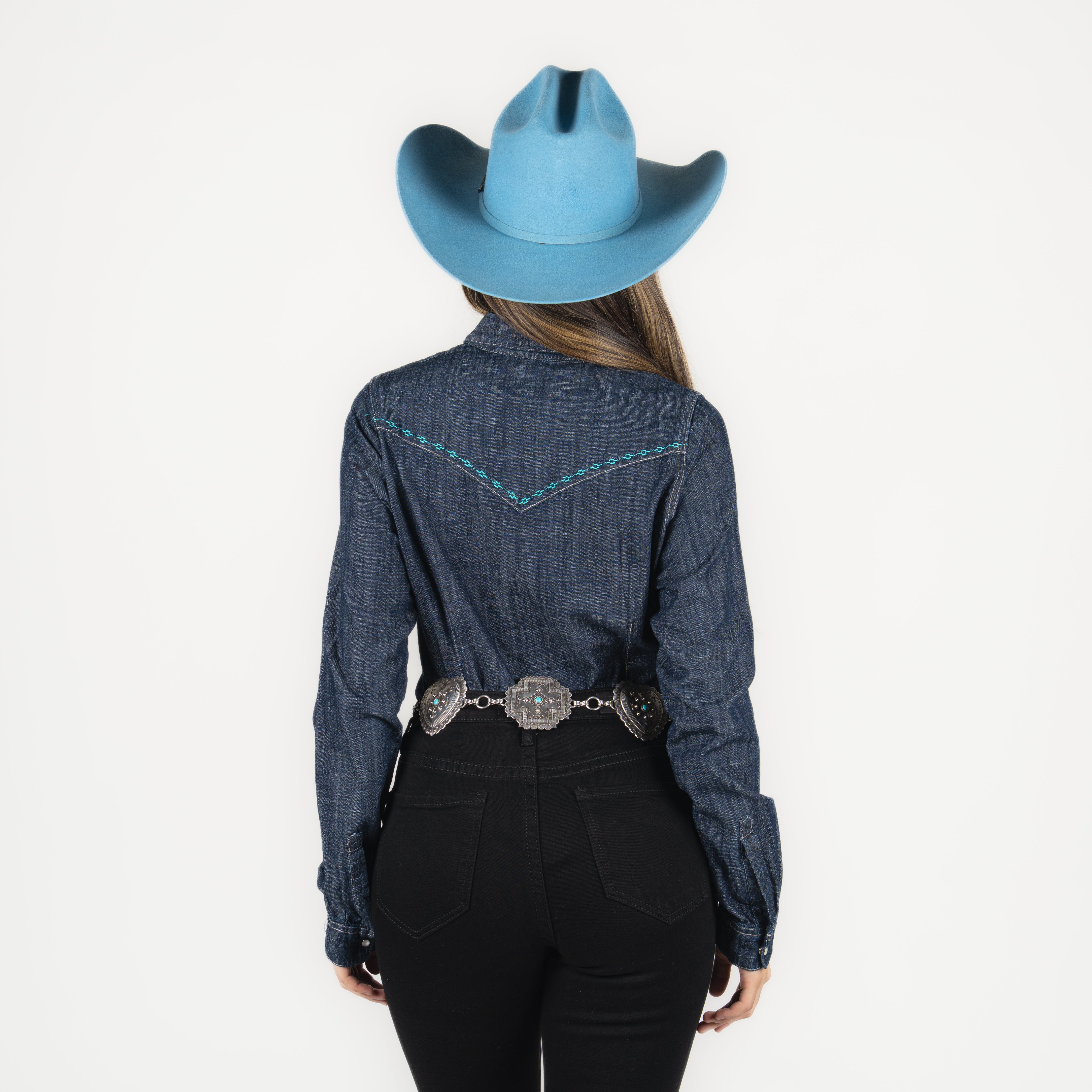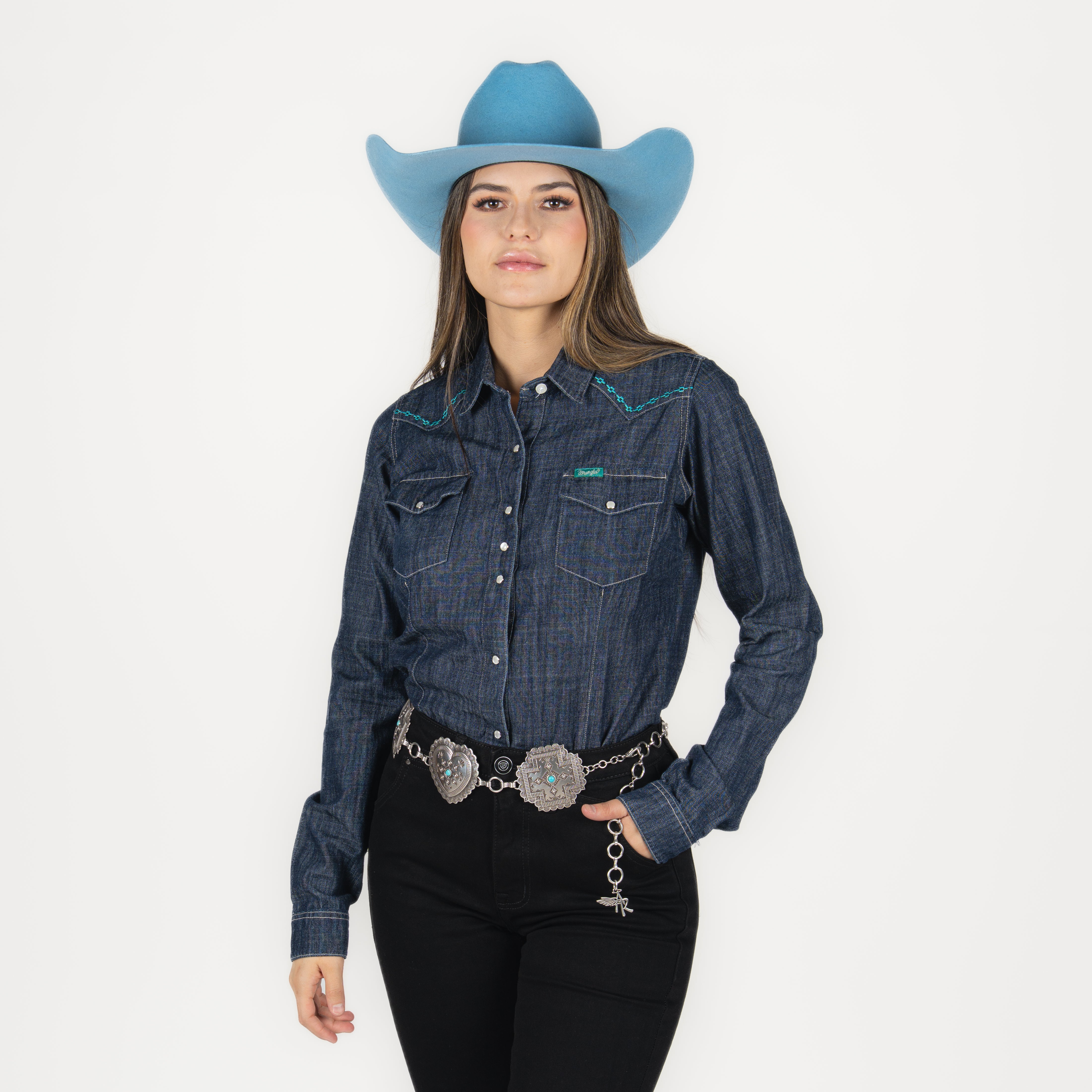 Camisa Wrangler Mezclilla Bordado Turquesa Dama