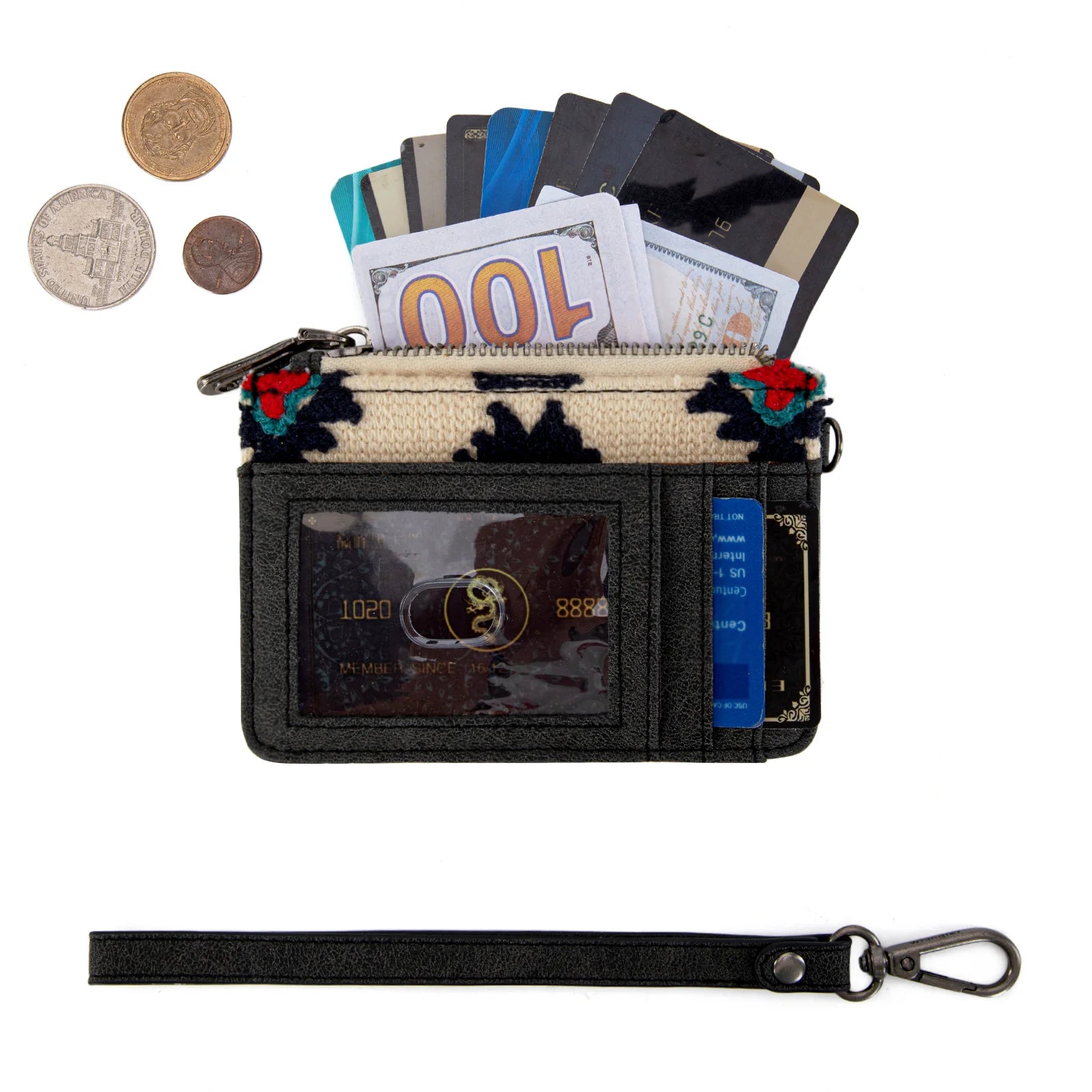- Bolsillo zip para monedas