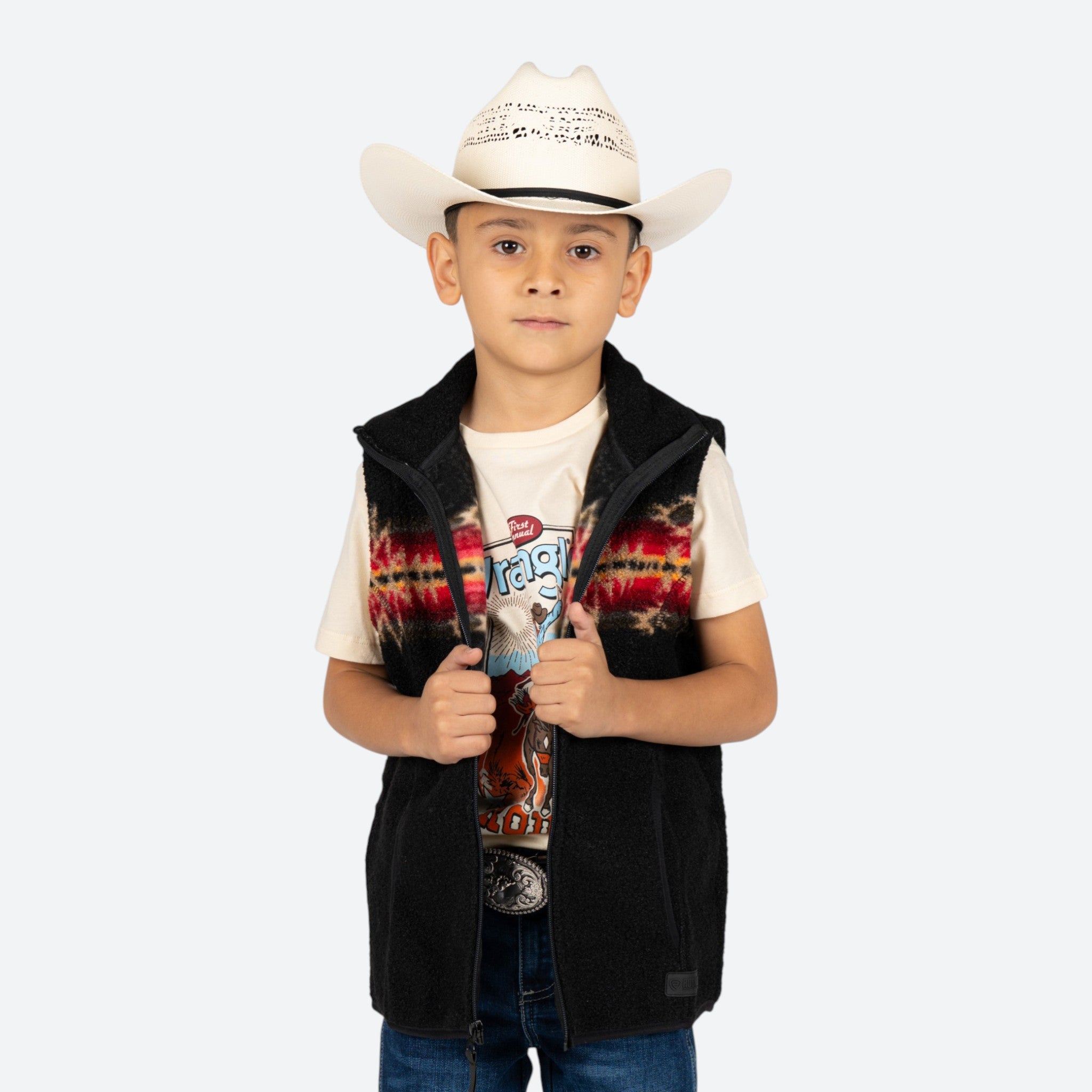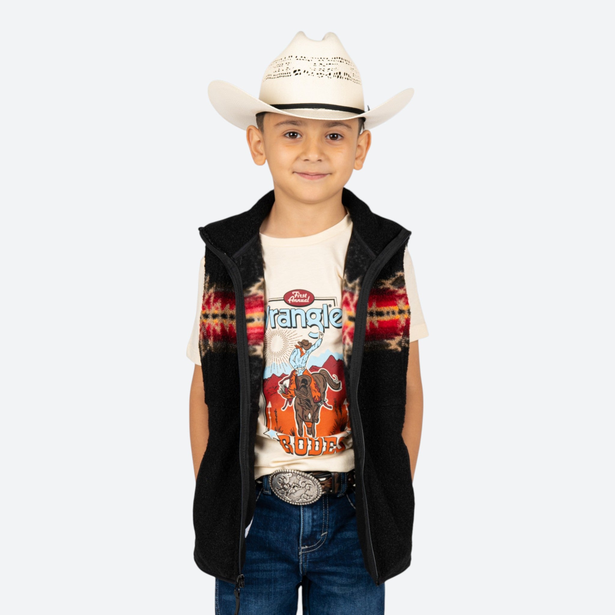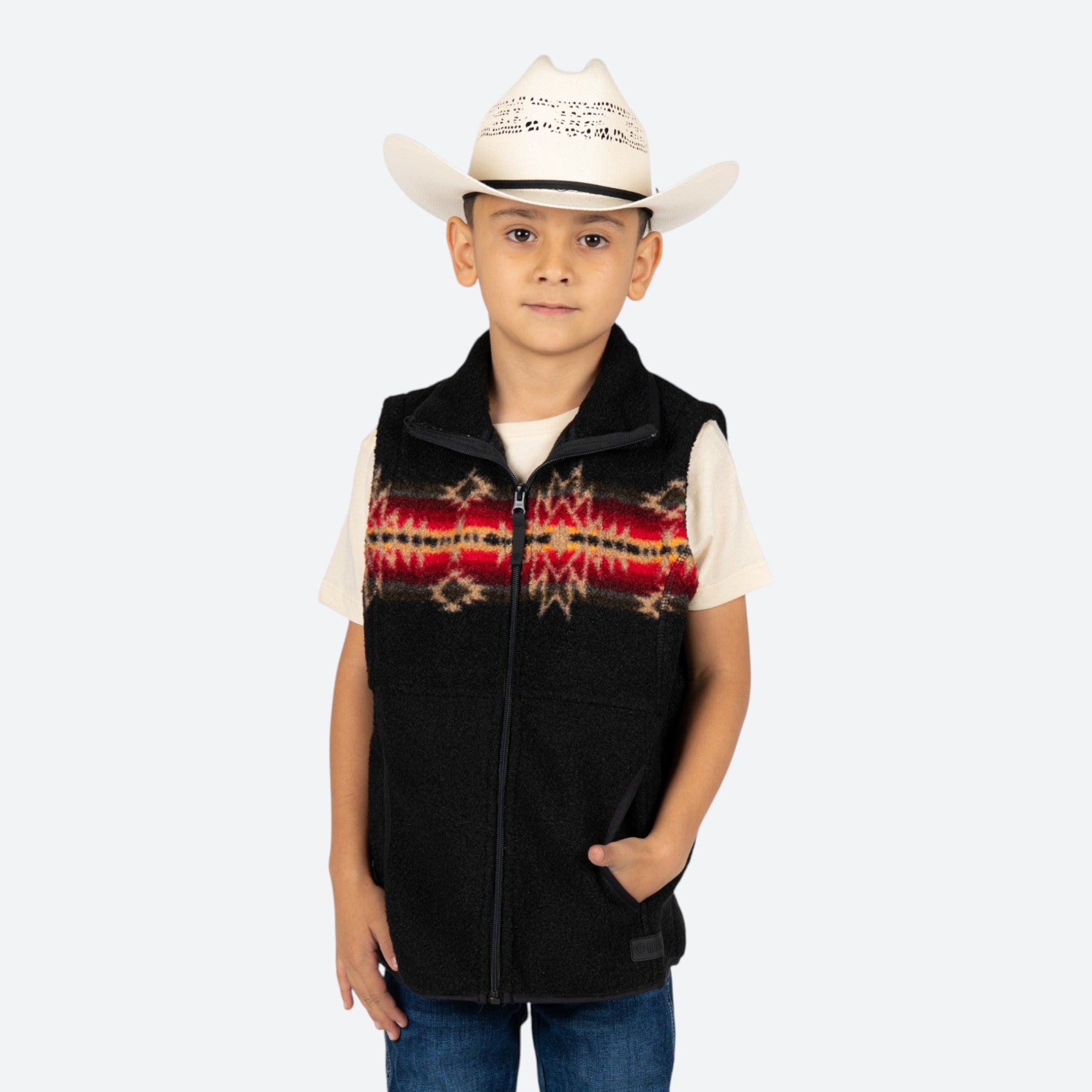 Chaleco vaquero con diseño Aztec, perfecto para el pequeño vaquero.