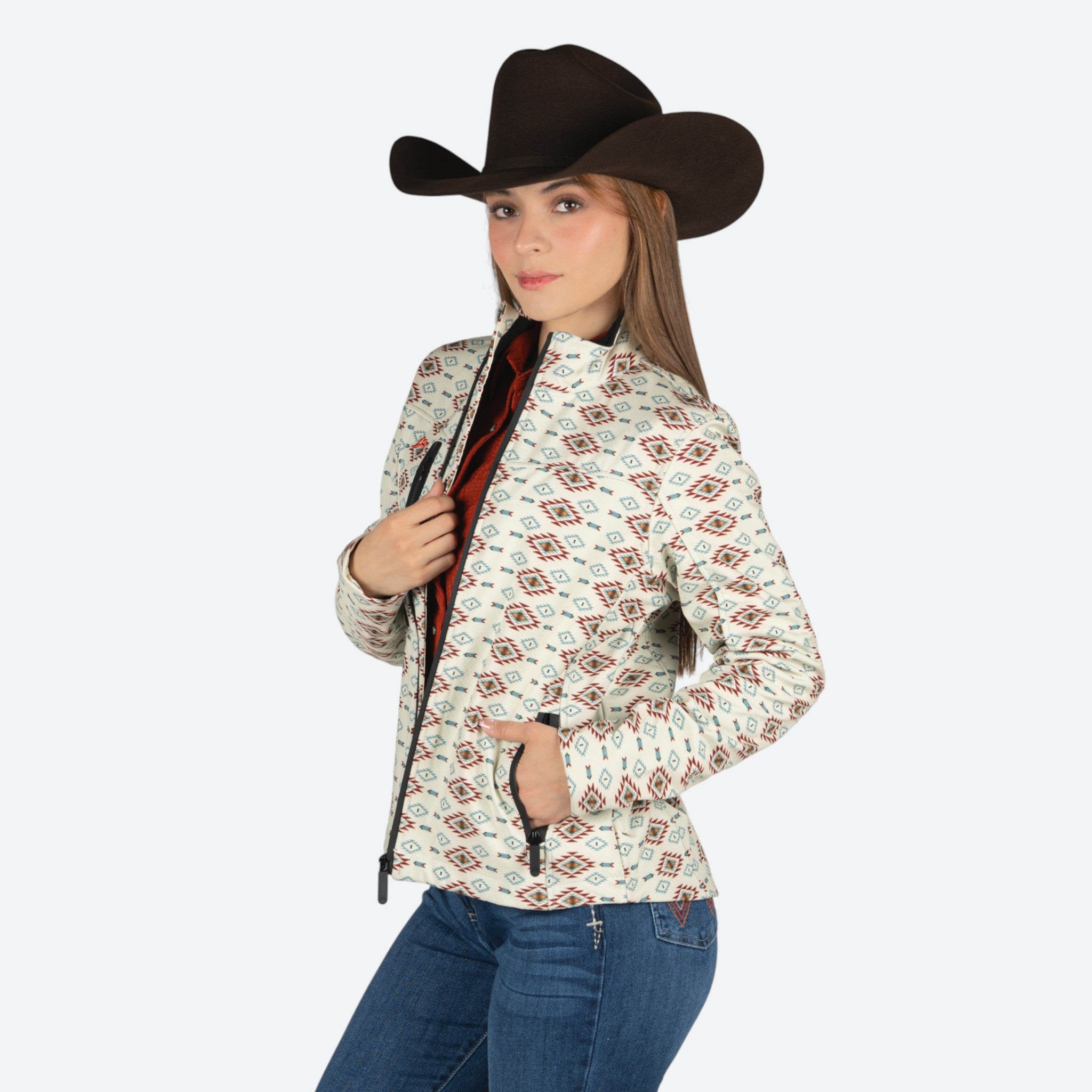 Chamarra Denver para dama con diseño aztec.