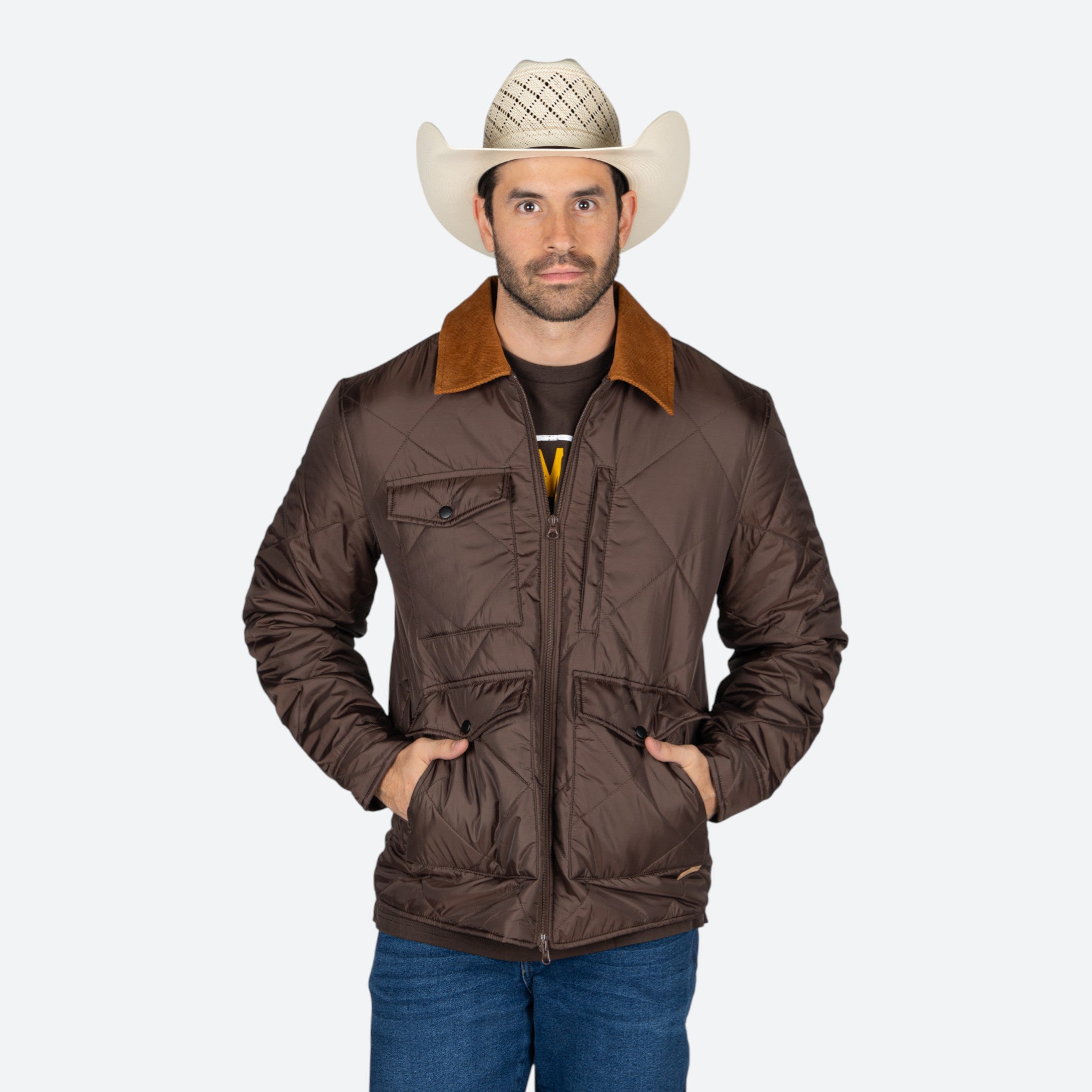 Chamarra Panhandle en café oscuro, elaborada con tela de alta densidad que ofrece resistencia y comodidad excepcionales. Su estructura robusta proporciona protección contra los elementos sin sacrificar la flexibilidad de movimiento.