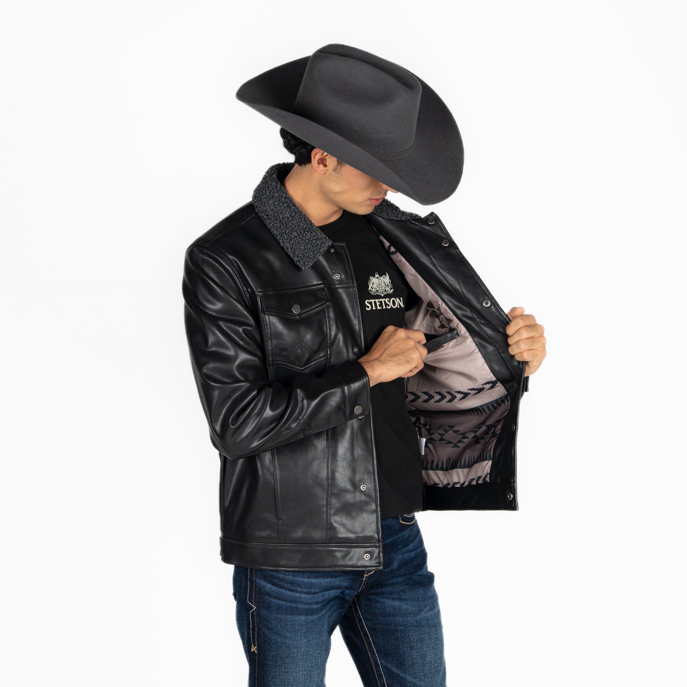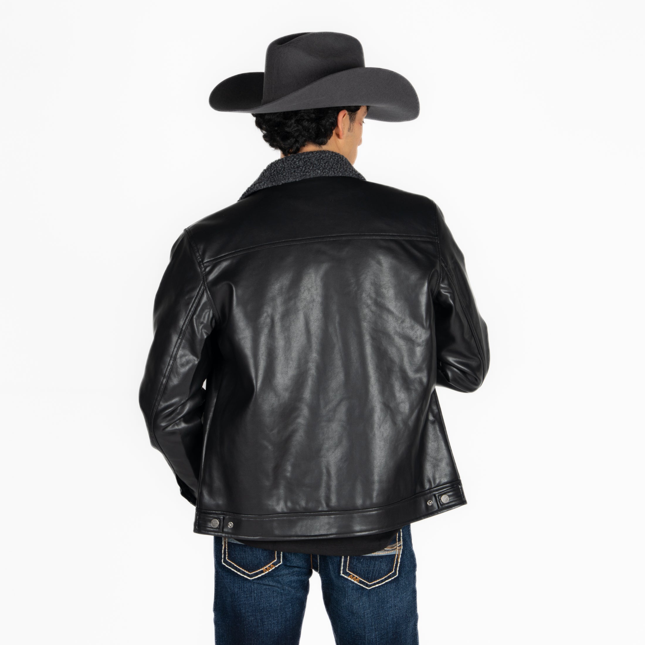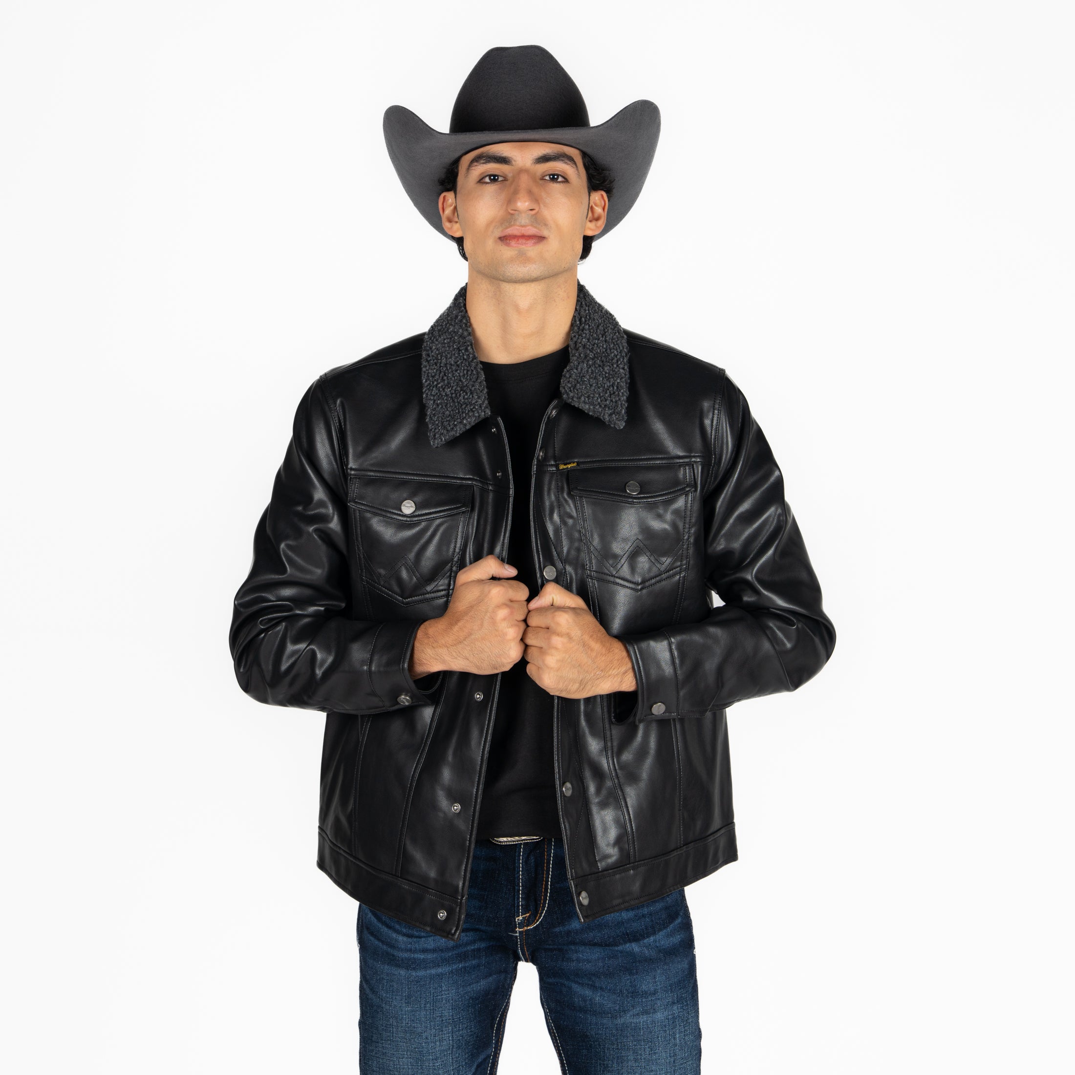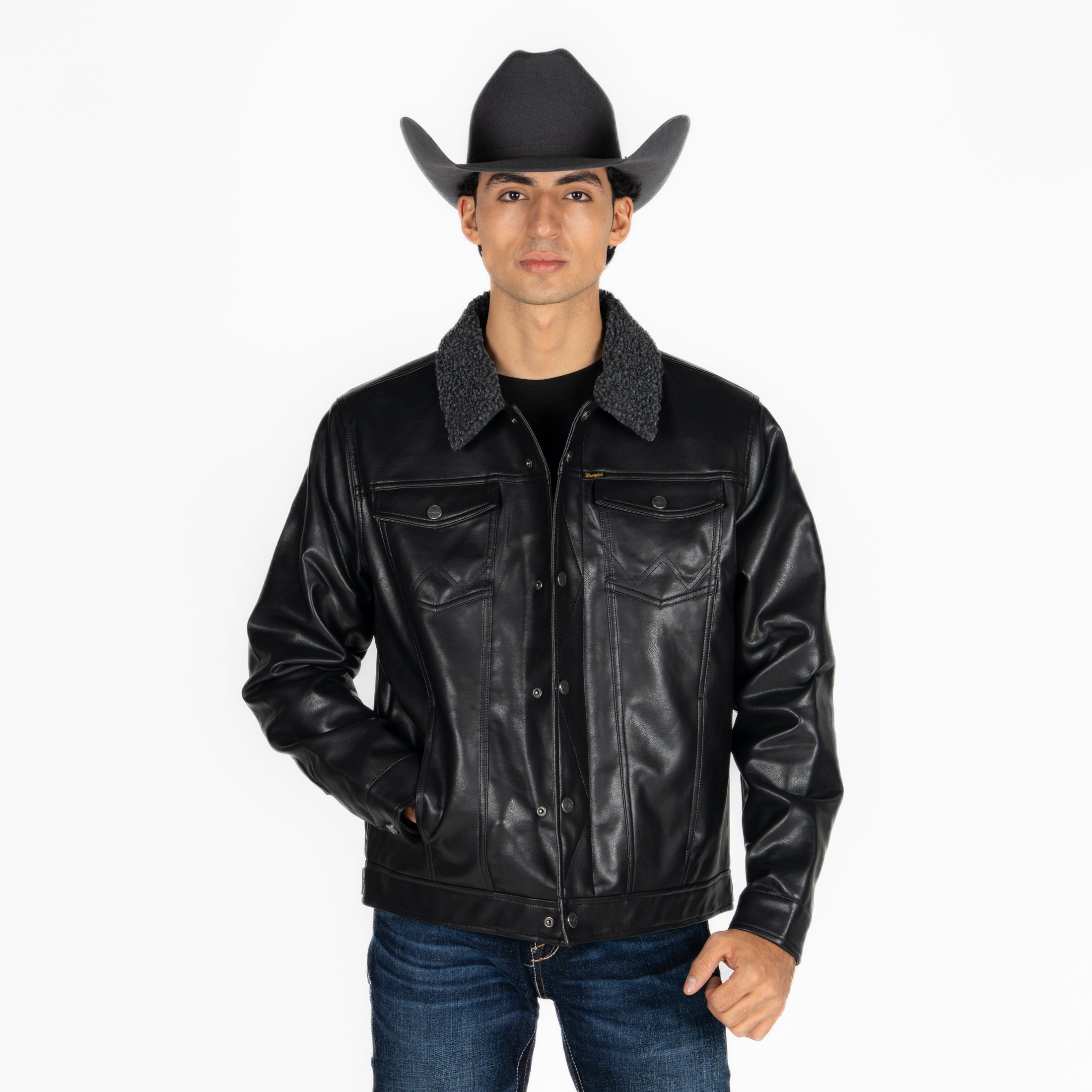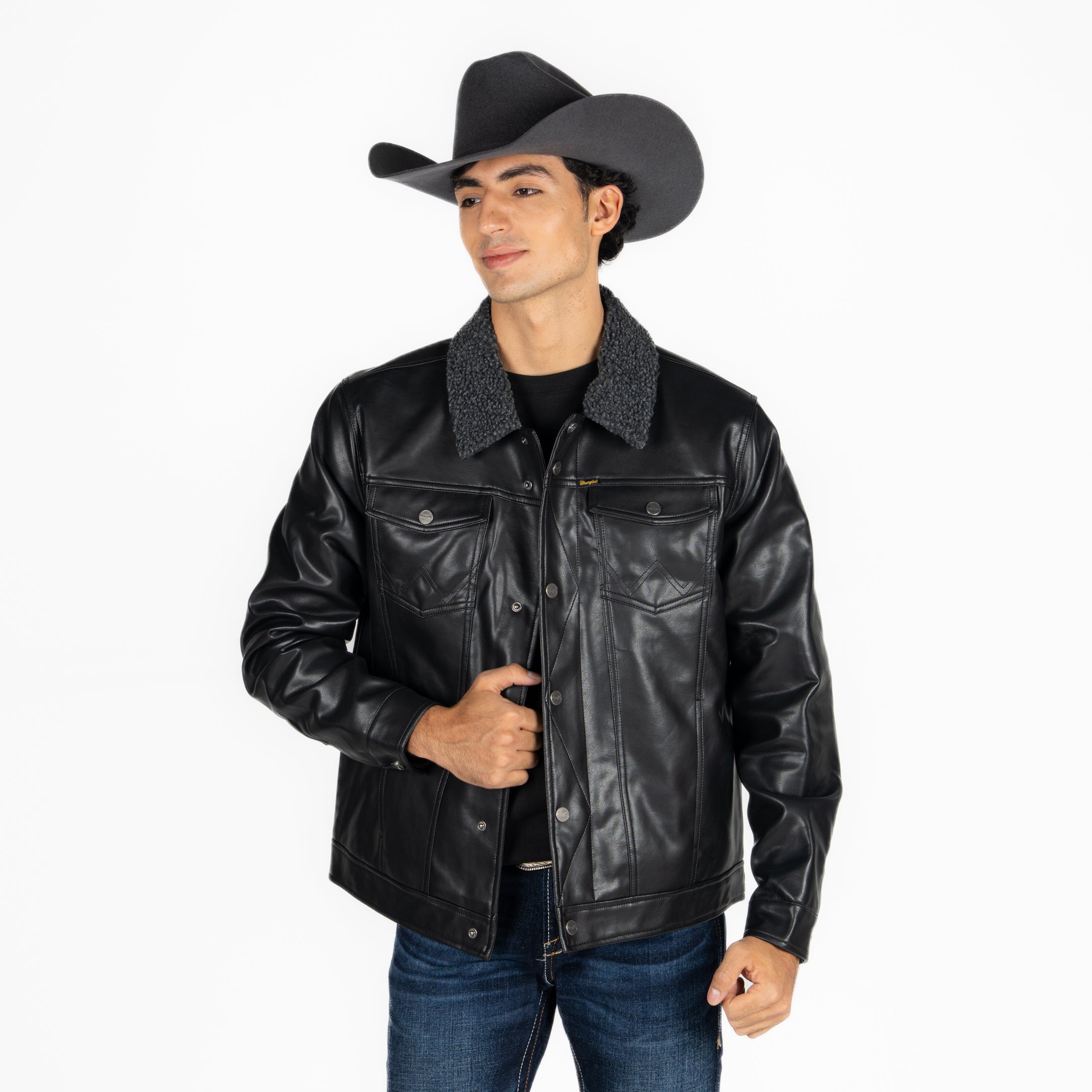 Chamarra Wrangler Borrega Vinipiel Negro Caballero