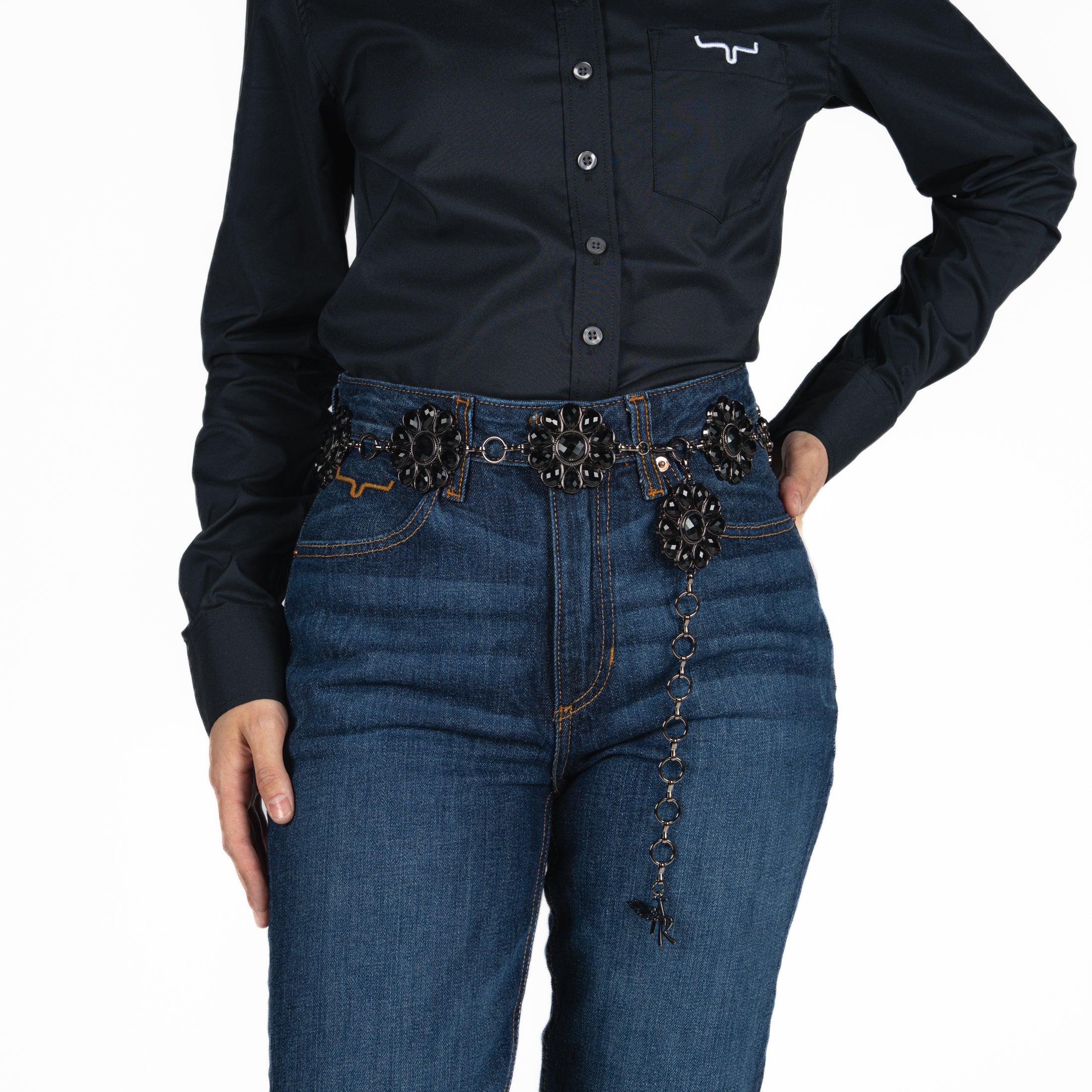 Cinturón Angel Ranch Concho Flor Negro Dama