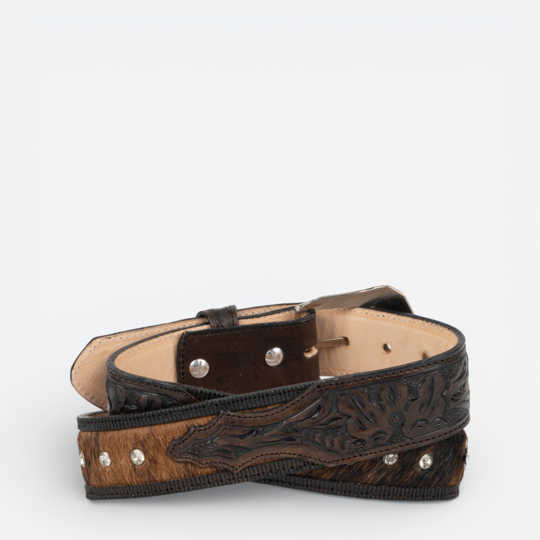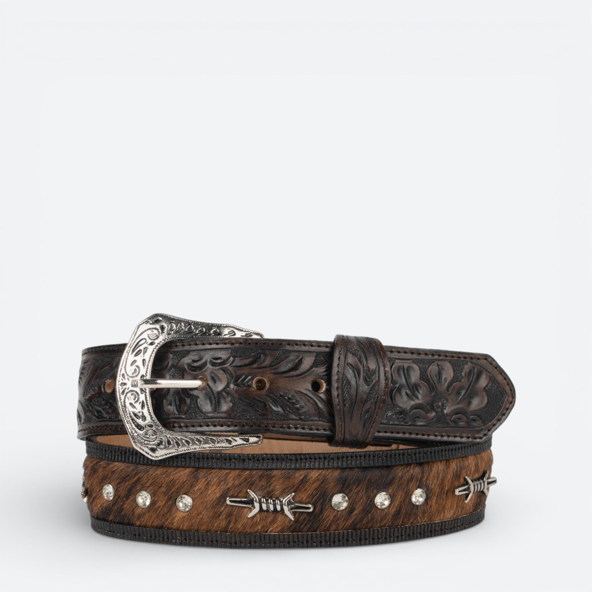 Cinturón de cuero genuino con acabado en pelo de púas, diseñado específicamente para la mujer moderna que busca estilo y funcionalidad.