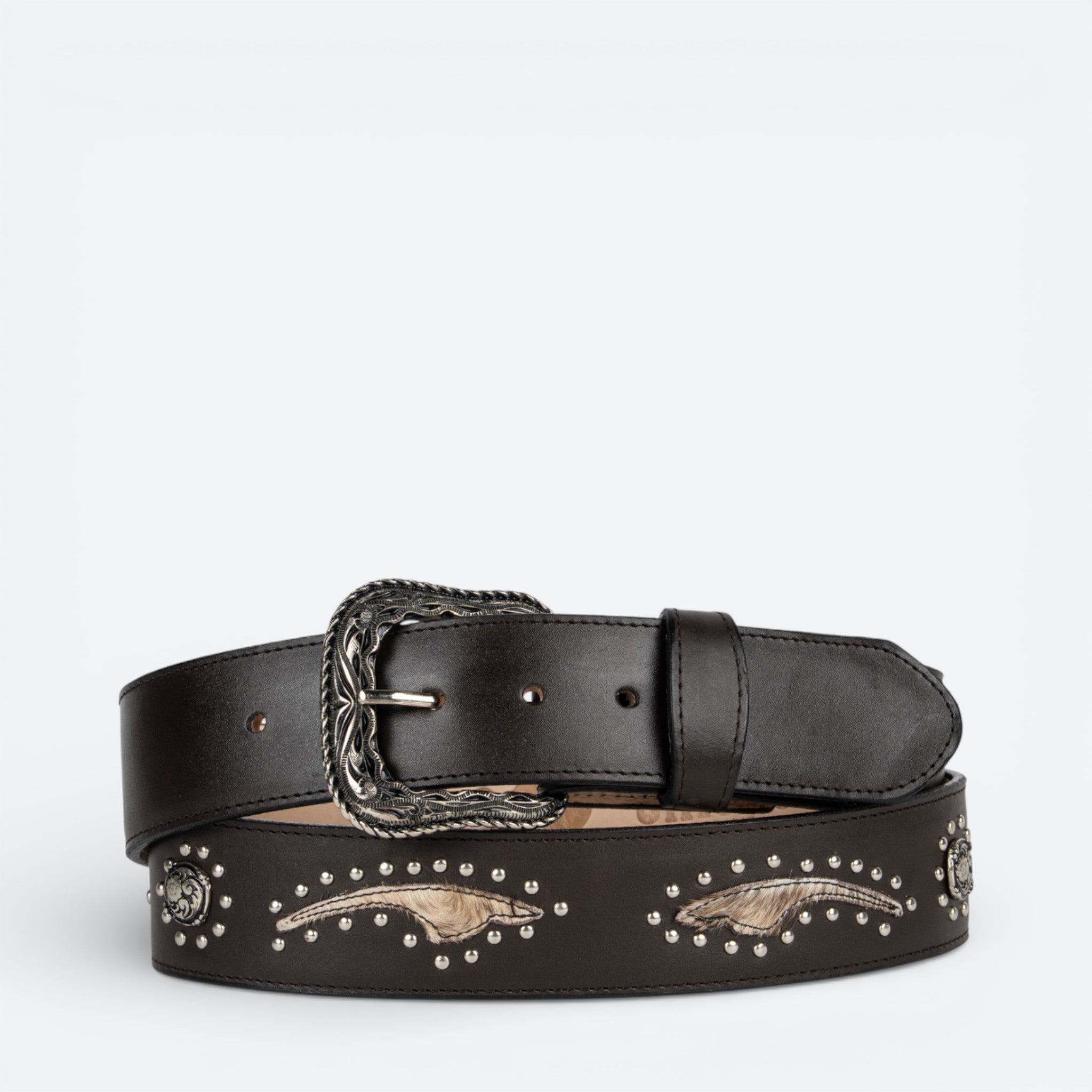 Cinturón de piel auténtica en tono chocolate, diseñado con la calidad característica de Chicho. Presenta un concho que añade elegancia y presencia a cualquier atuendo vaquero.