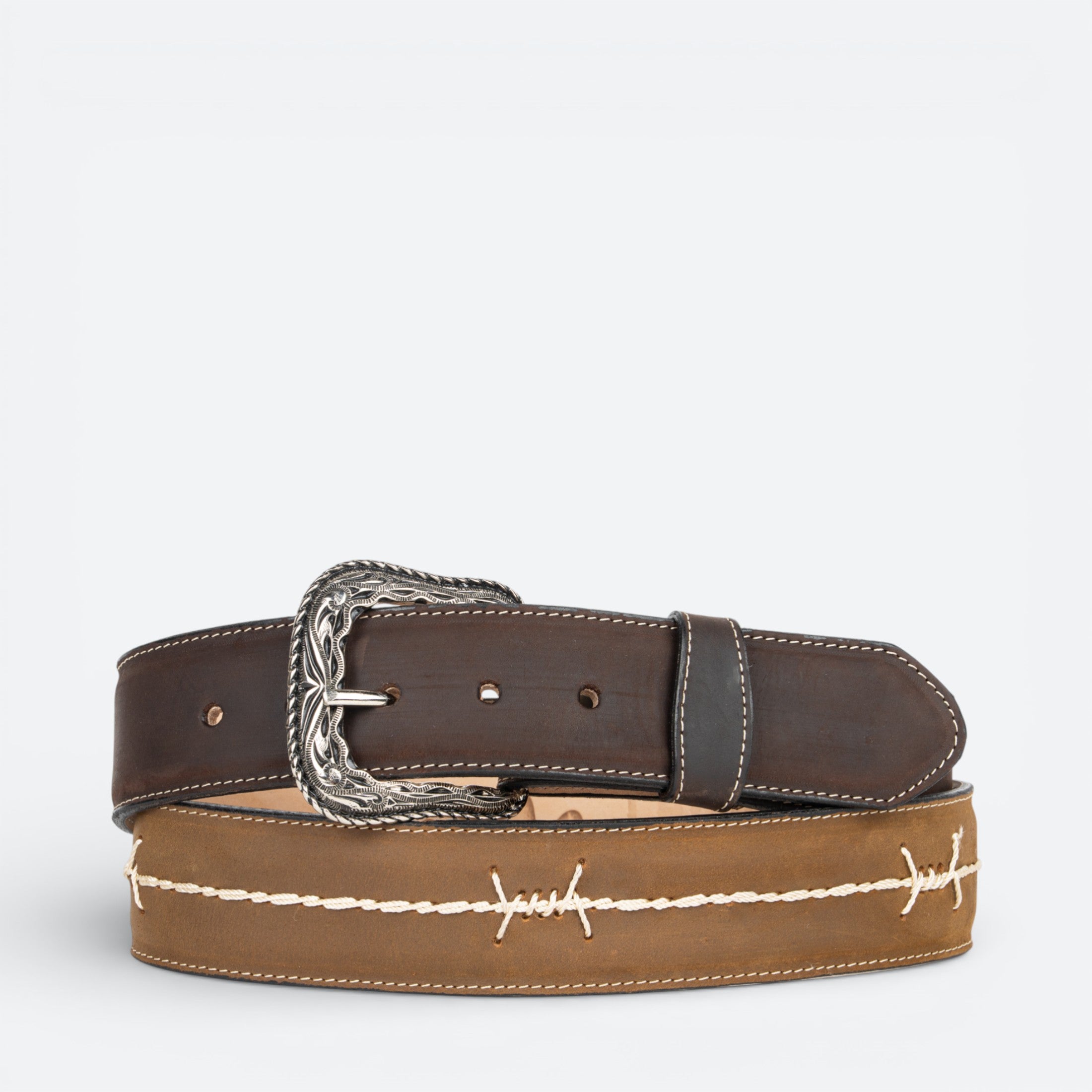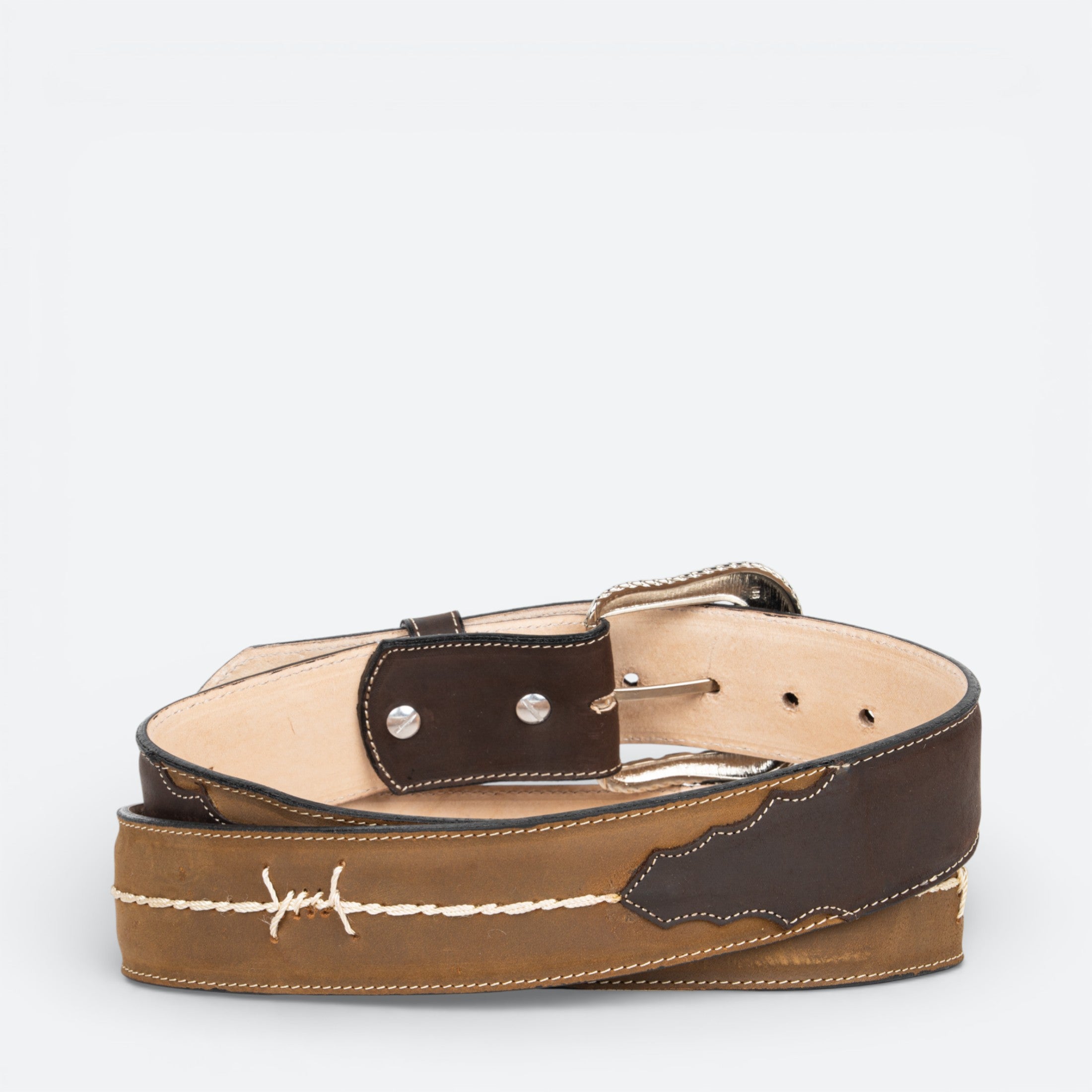 Cinturón vaquero de cuero genuino con diseño de púas en tonalidad miel, ideal para el caballero que busca estilo.