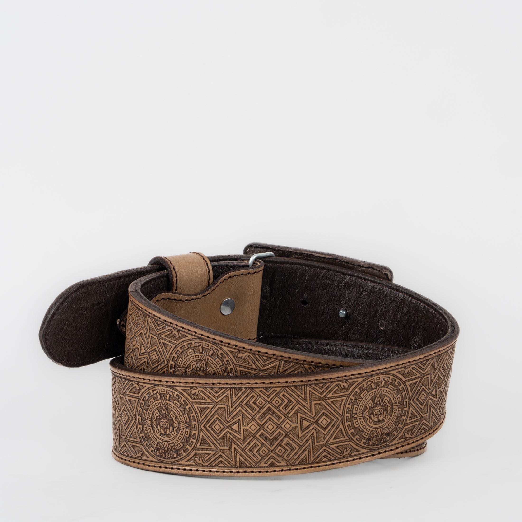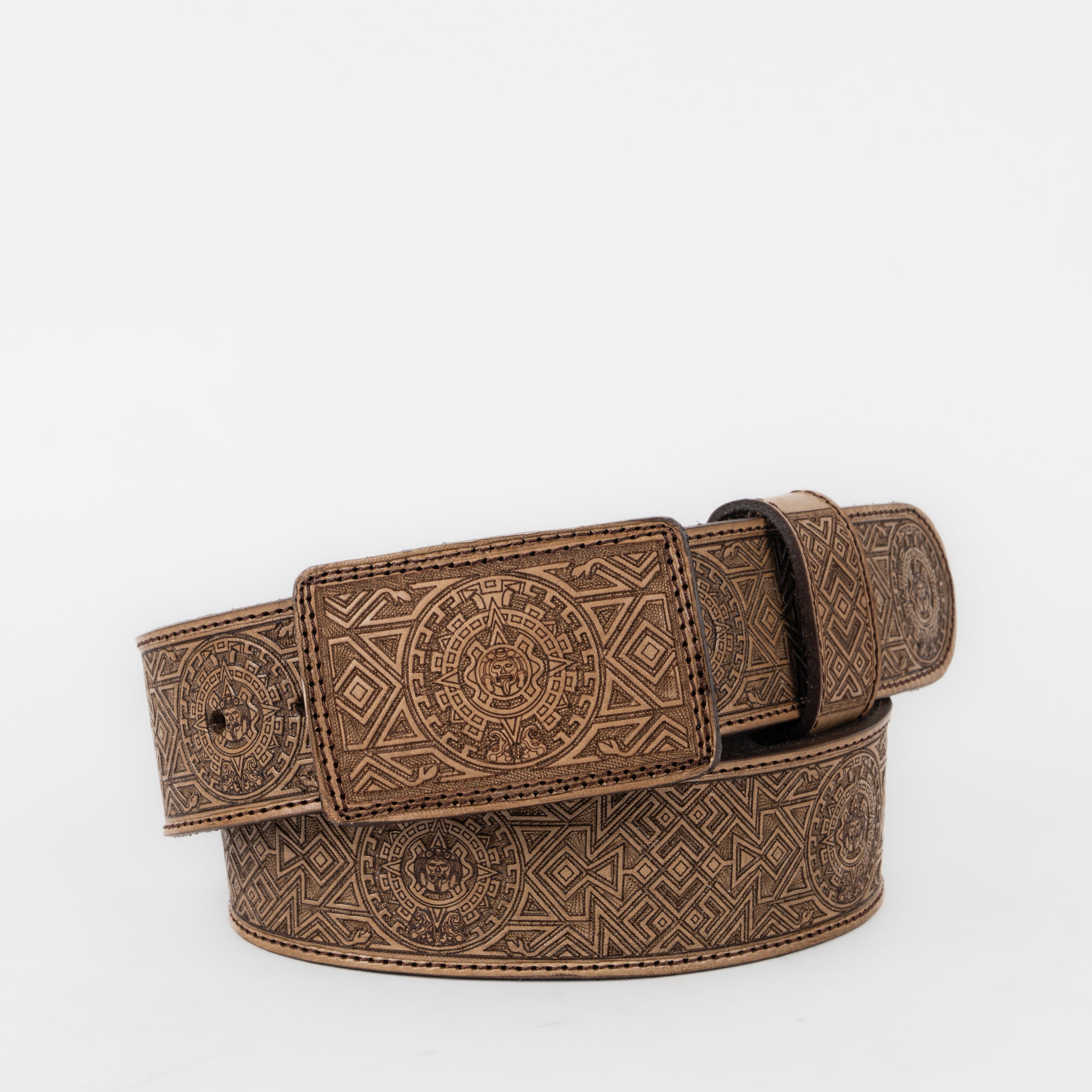 Cinturón Cincelado Láser Azteca Café Caballero 01