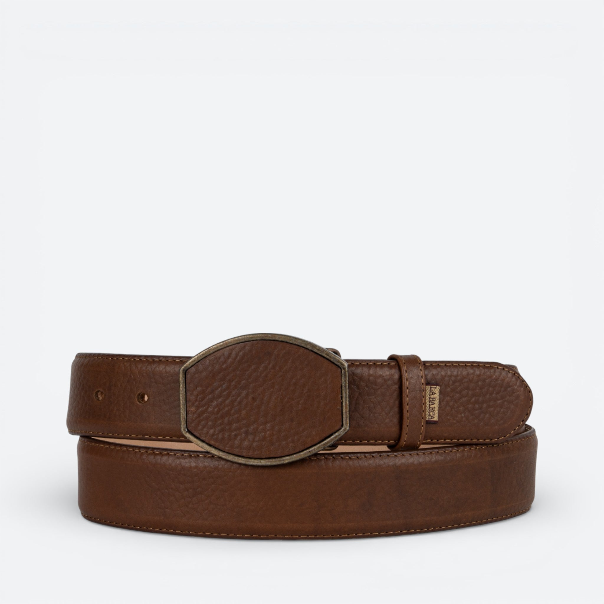 Cinturón de piel auténtica La Barca en tonalidad café, diseñado con el estilo clásico Dallas que define al caballero moderno. Confeccionado con cuero de primera calidad, ofrece durabilidad y elegancia para complementar tanto atuendos casuales como formales. Su acabado tradicional y construcción robusta garantizan años de uso confiable. Ideal para quien valora la autenticidad y la calidad en sus accesorios.