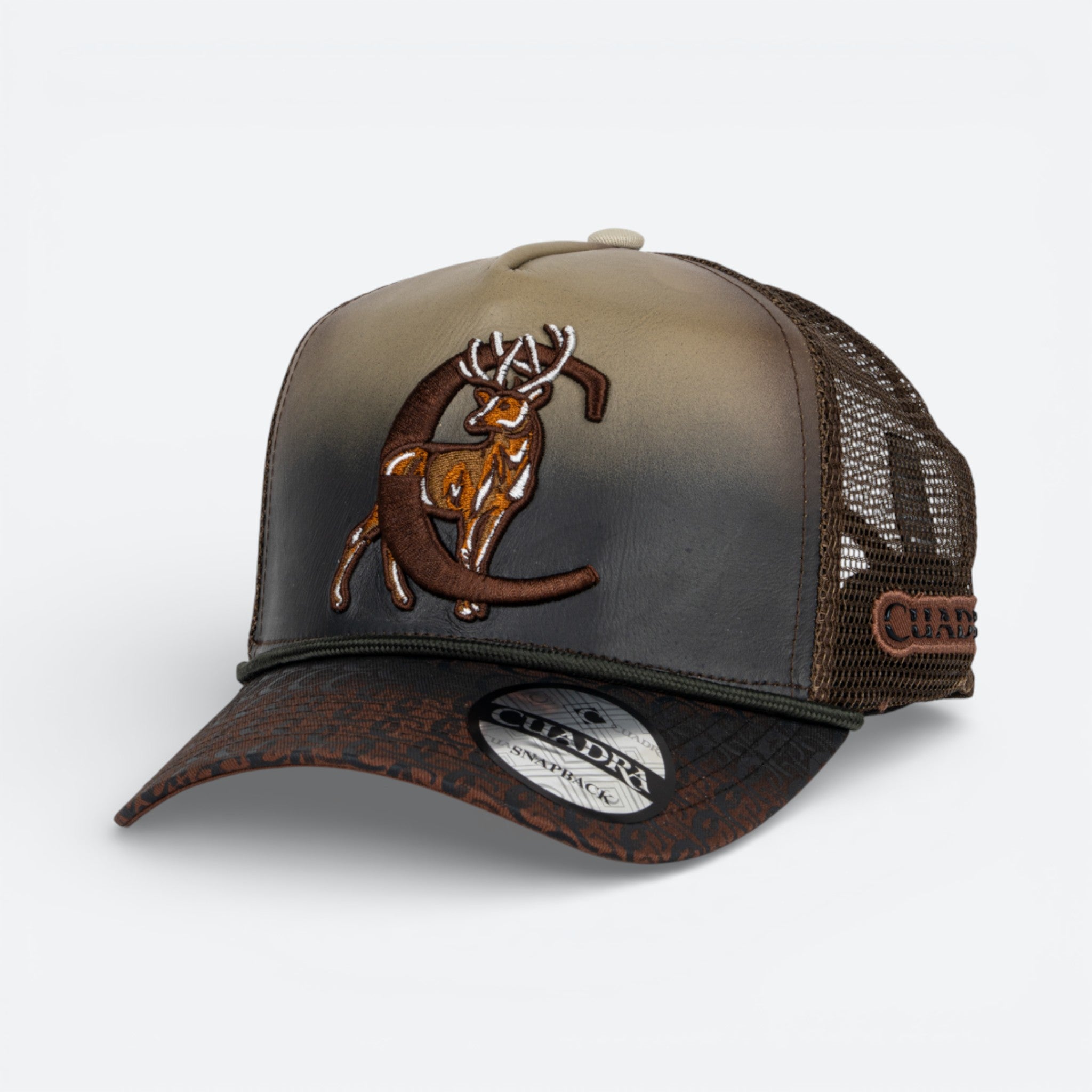 Gorra Cuadra confeccionada con técnica de tejido artesanal que destaca un elegante venado en su diseño frontal. Elaborada con materiales de calidad premium, ofrece comodidad y durabilidad para uso diario.