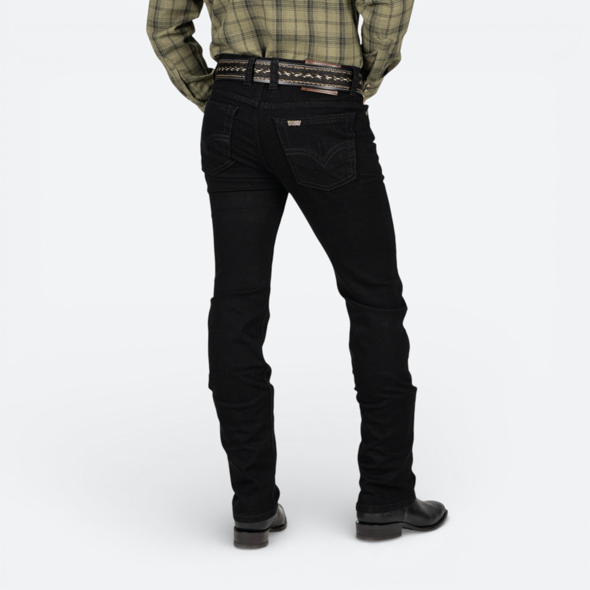Jeans Rodeo Negro confeccionados con denim de alta calidad que garantiza durabilidad y comodidad en el uso diario. Este modelo clásico presenta un corte tradicional que se adapta perfectamente a la morfología masculina, ofreciendo libertad de movimiento sin comprometer el ajuste.