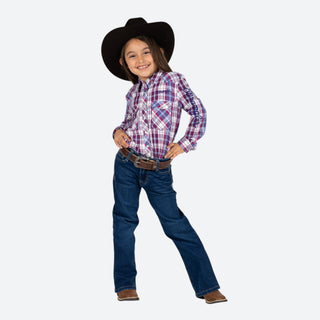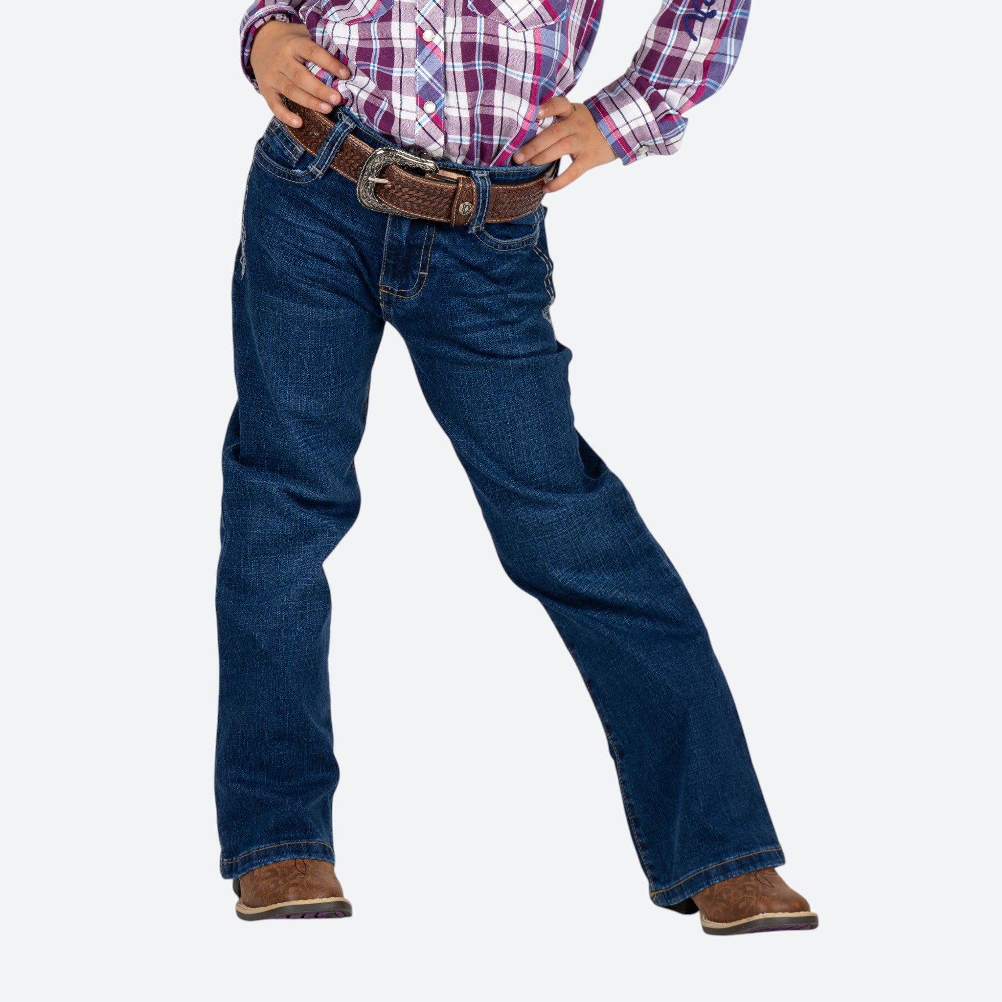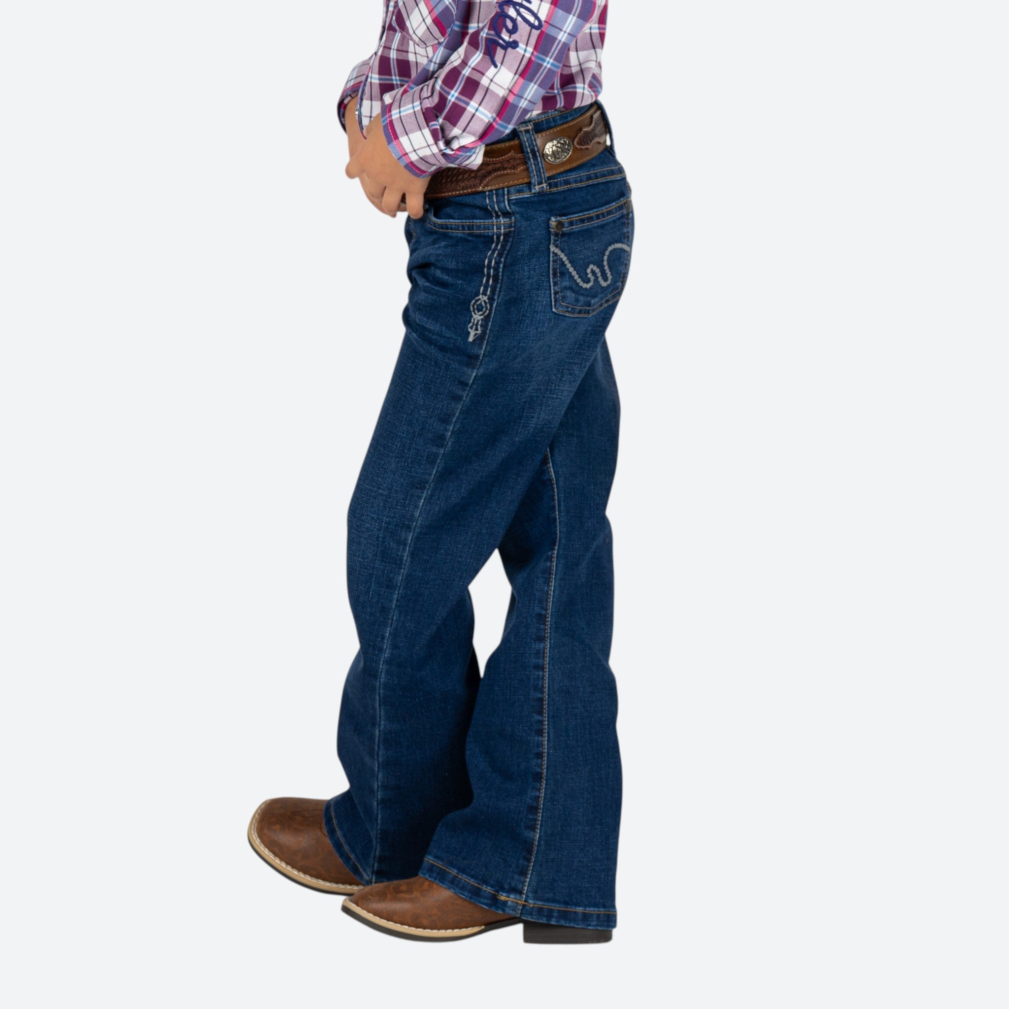Pantalón vaquero Wrangler para niña. Corte recto y ajustado que se adapta perfectamente al uso con botitas.
