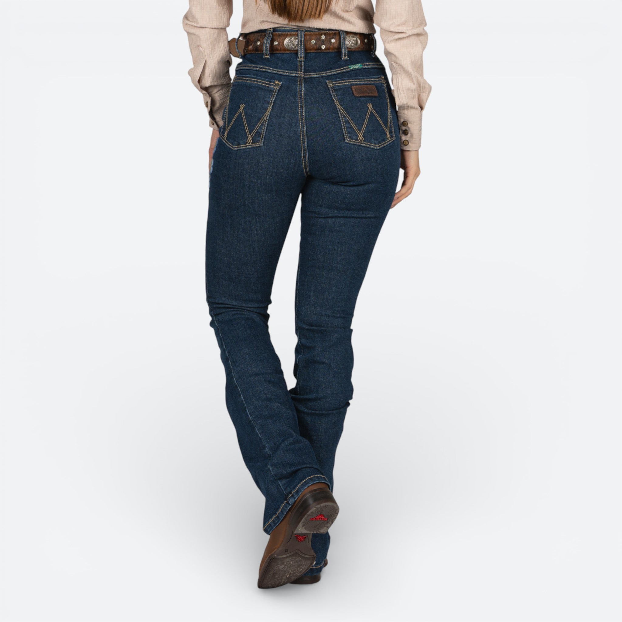 Jeans Wrangler Flare Cintura Alta Flor Azul Dama
