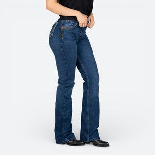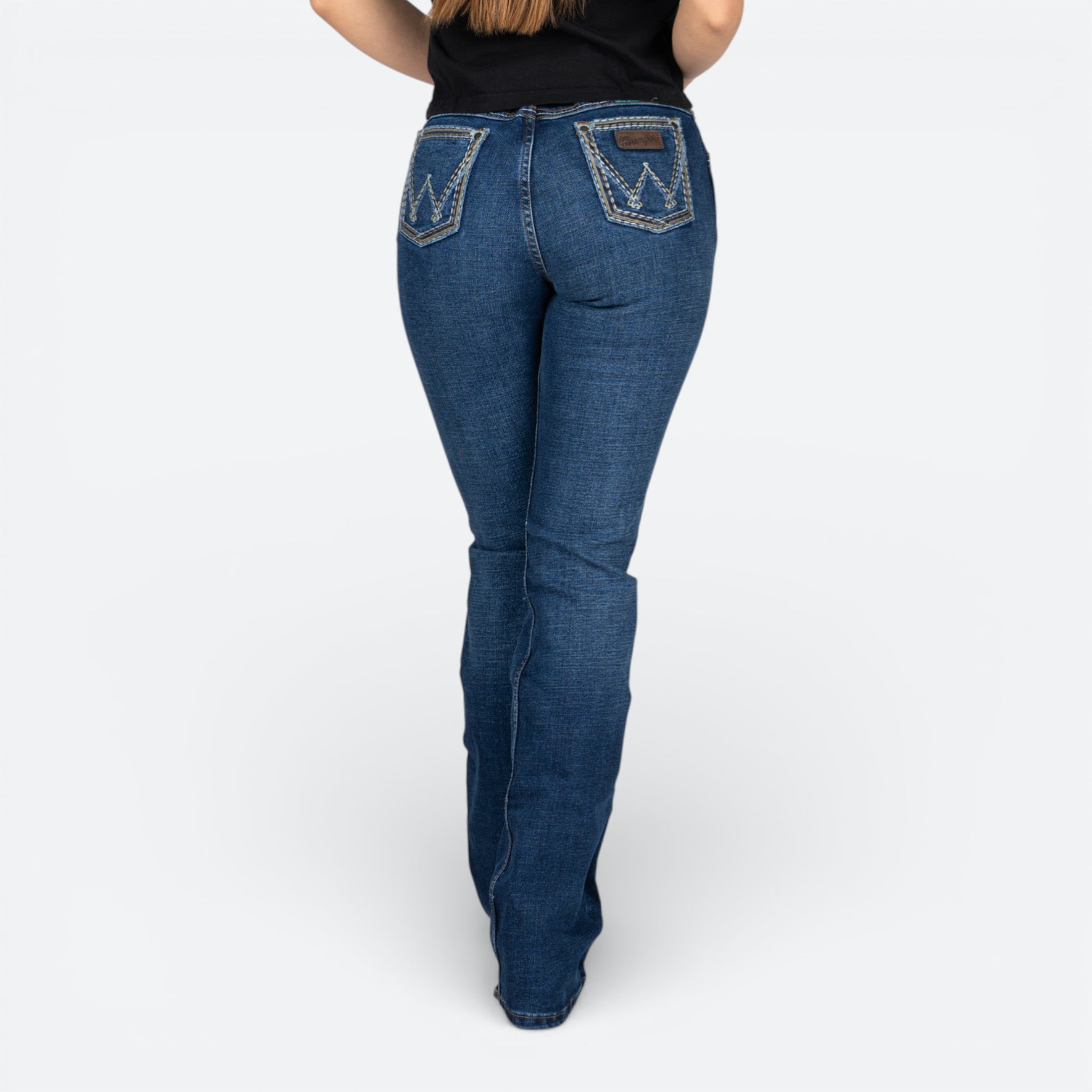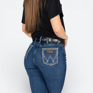 Jeans de corte alto Wrangler para dama en color marino. Diseñados con un ajuste clásico que favorece la silueta, estos jeans ofrecen comodidad y durabilidad para el uso diario. Ideal para usar tus botas favoritas.