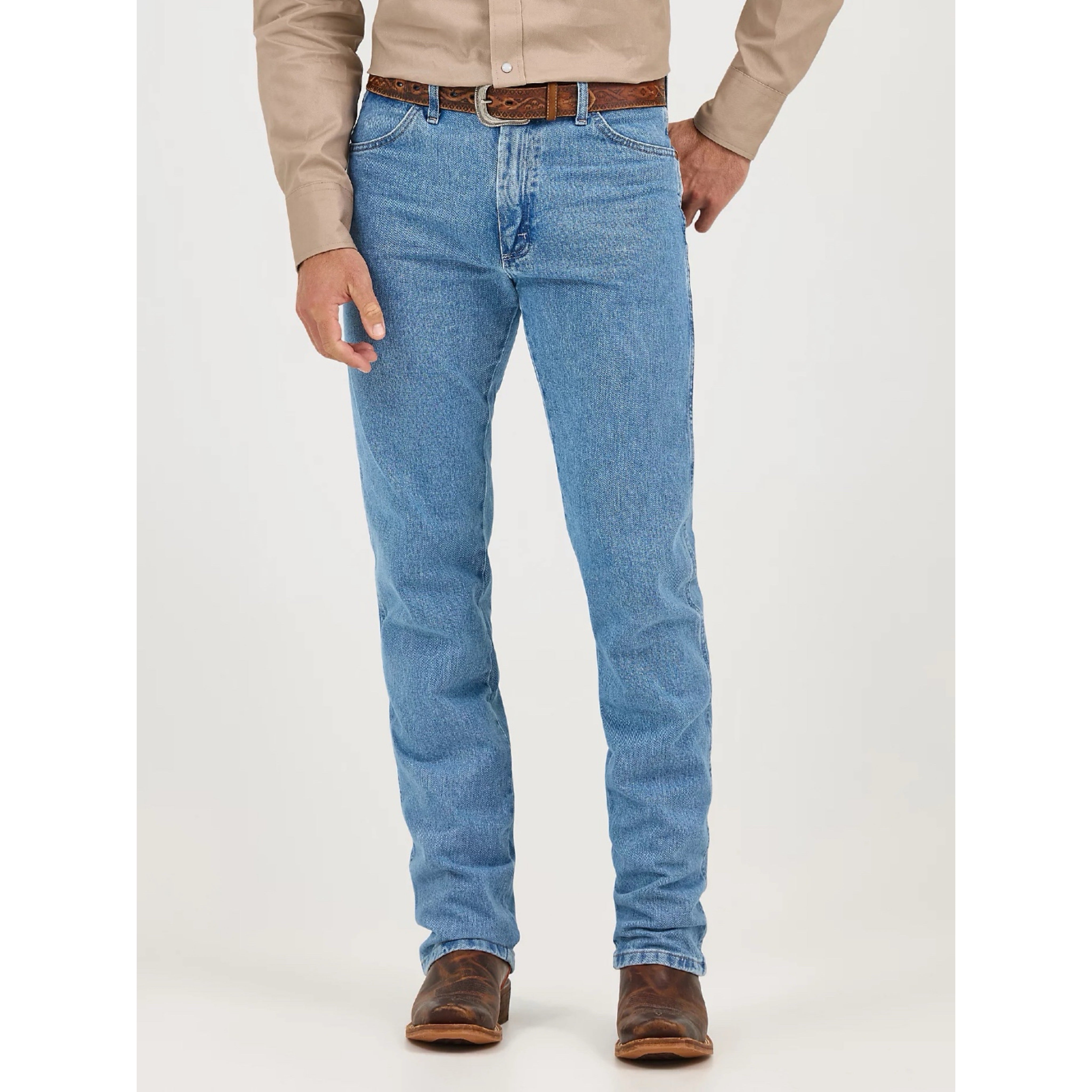 Durante más de 70 años, nuestros vaqueros 13MWZ Cowboy Cut® han sido un verdadero elemento básico de vestuario probado para los vaqueros de todo el país. Hoy en día, 13MWZ es el vaquero oficial de la competición ProRodeo. Sabíamos algo bueno cuando lo vimos, por lo que los vaqueros Wrangler® Cowboy Cut® no han cambiado mucho desde que fueron diseñados por primera vez por "Rodeo Ben" Lichenstein en 1947. Estos vaqueros cómodos y duraderos vienen totalmente equipados con todos los detalles auténticos que esperarías de un sello distintivo de la cultura vaquera, incluyendo un parche de neolita clásico, un estilo de cinco bolsillos y nuestra característica costura "W". Cuando se trata de mantener tu armario bajo control y listo para cualquier cosa, nunca puedes tener demasiados pares de vaqueros Cowboy Cut® Wrangler® para hombre.