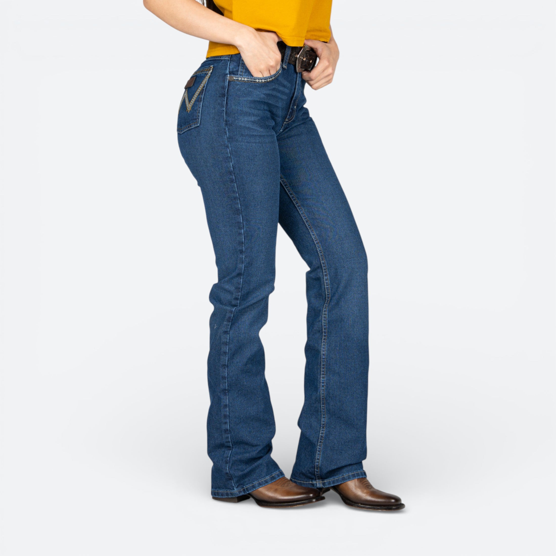 Jeans Wrangler Retro de talle alto diseñados especialmente para complementar tus botas favoritas. Con un corte clásico que favorece la silueta, estos jeans ofrecen comodidad y durabilidad en cada uso.