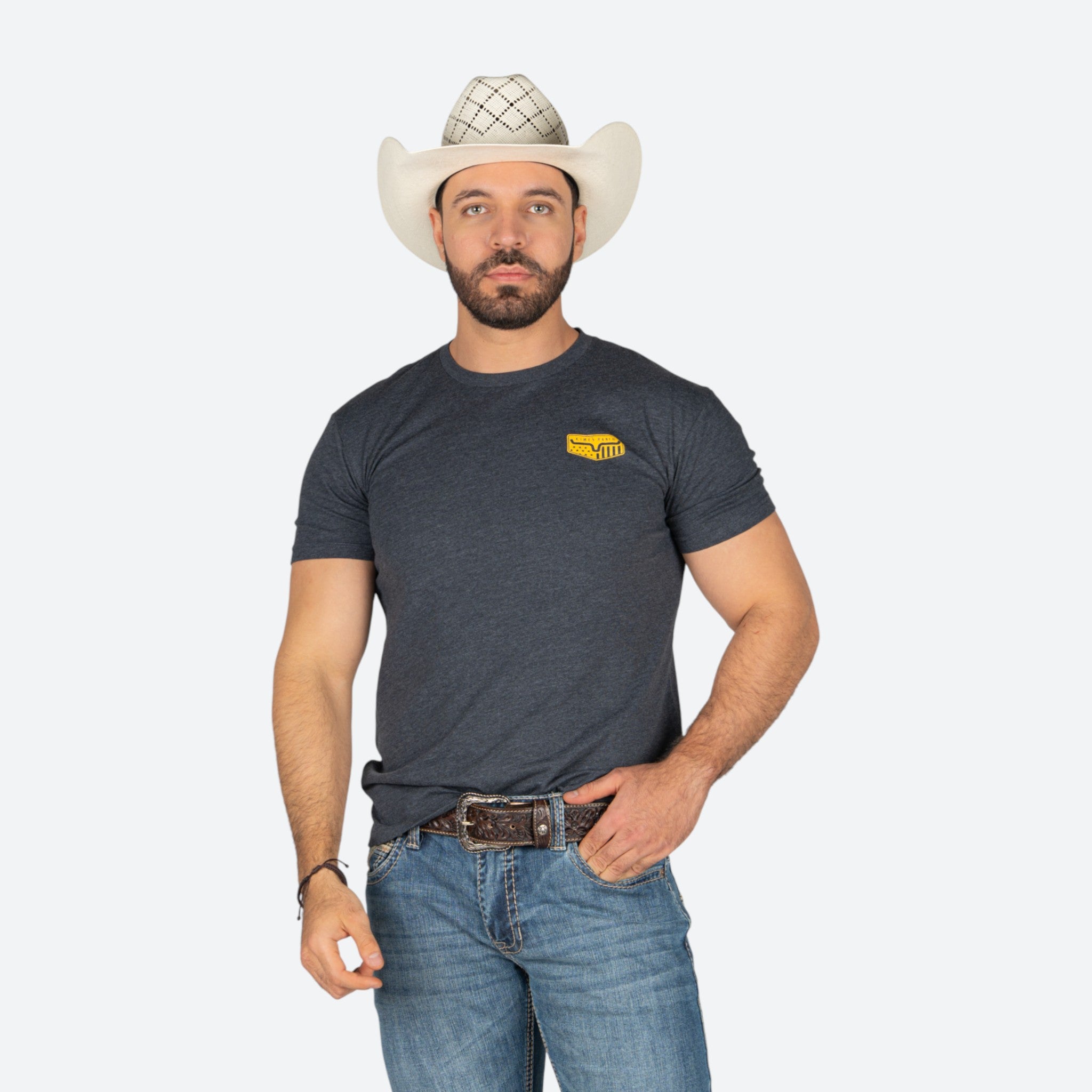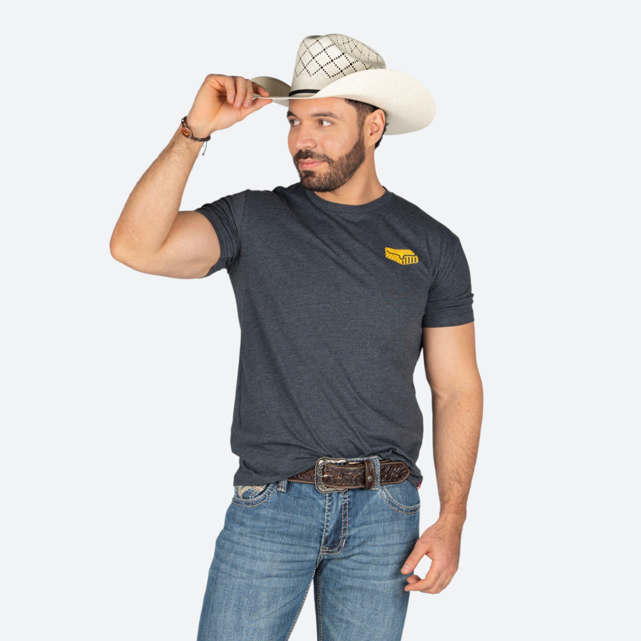 Playera de caballero Kimes Ranch modelo Spangled en color carbón. Confeccionada con materiales de calidad superior, esta prenda combina estilo occidental auténtico con comodidad excepcional.