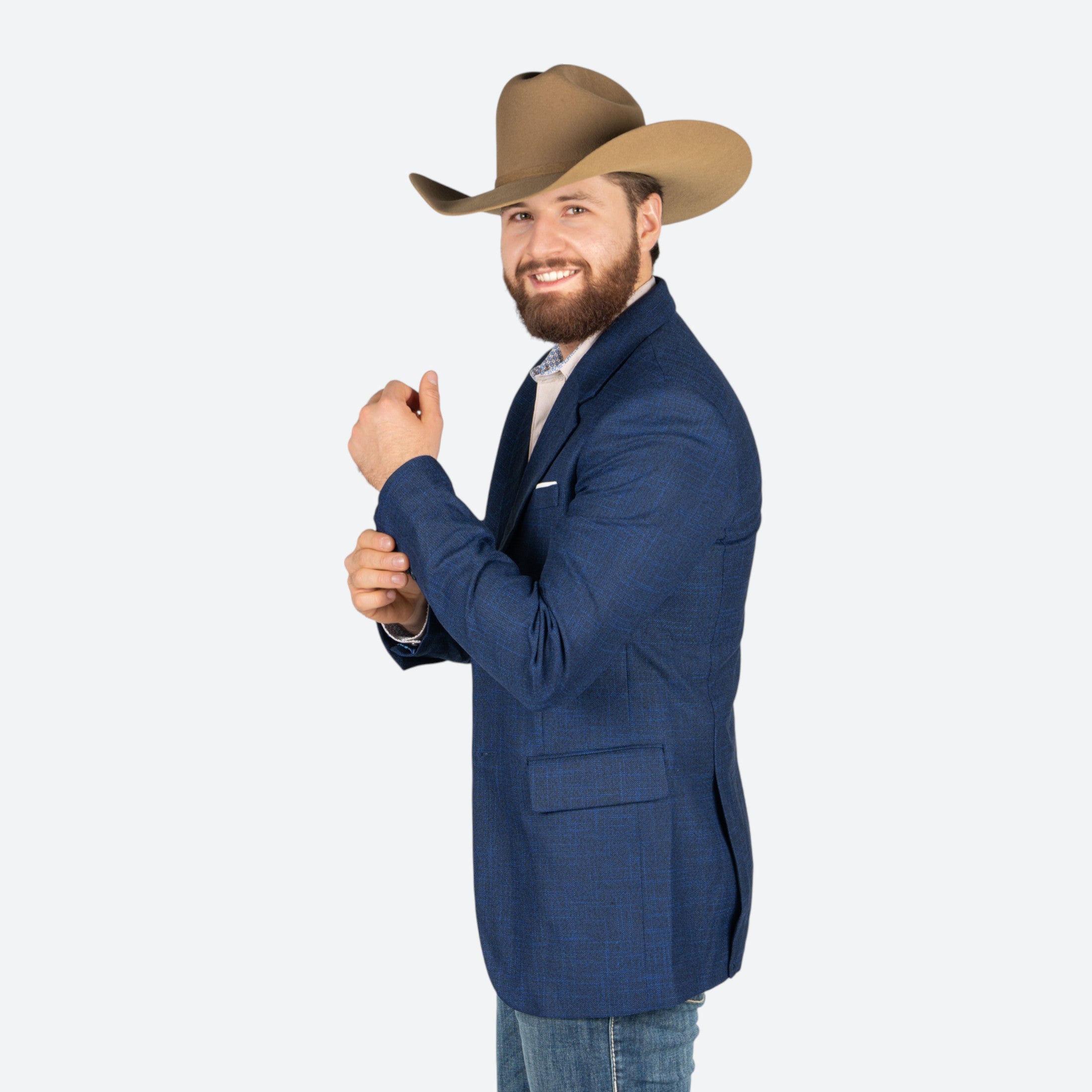 Saco vaquero de corte clásico en azul marino, diseñado para el caballero que aprecia el estilo rock & roll.